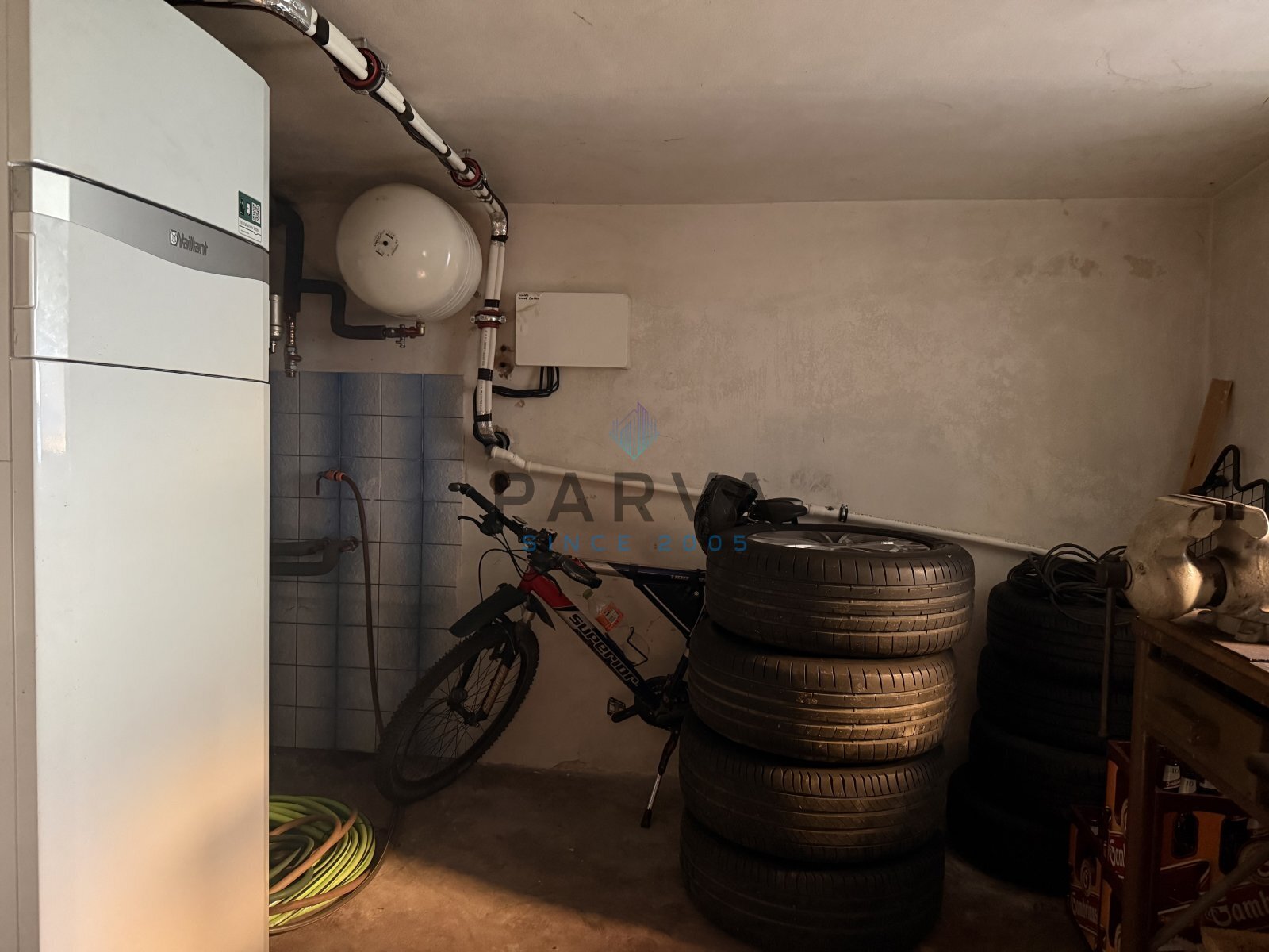 Pod domem vedle sklepa je technická místnost - bojler na ohřev vody, expanzní nádoba a dílna na nářadí.