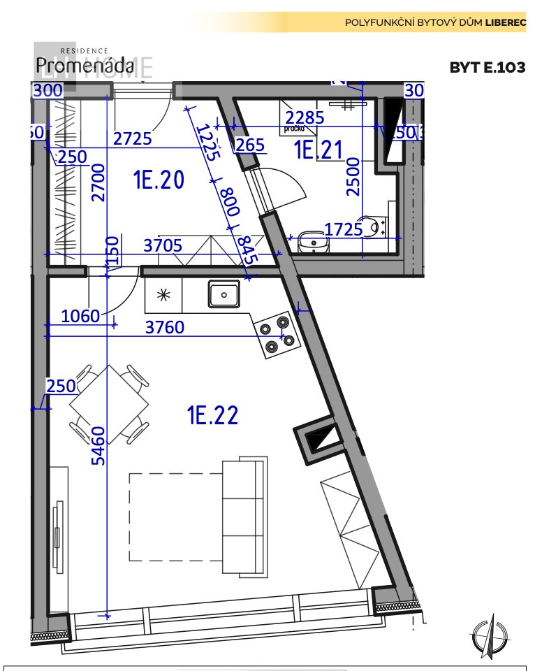| Dispozice/podlahová plocha: | 1+kk/40 m² |