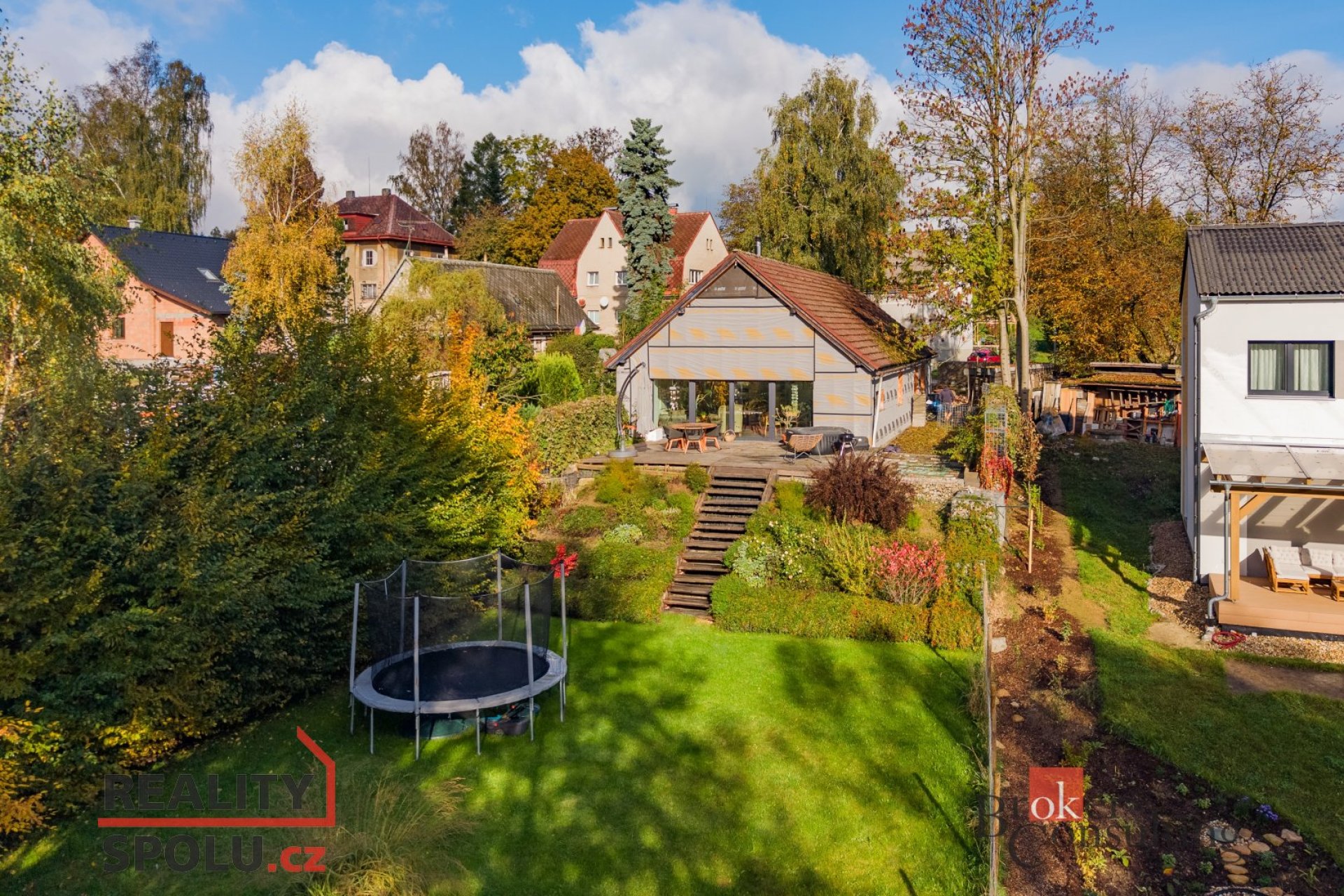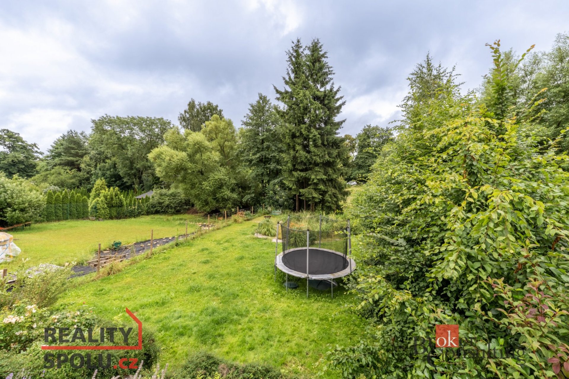 -zahradu tak akorát: je dost velká na hraní pro děti, trampolínu nebo posezení u ohně, ale ne tak moc, aby vám její údržba brala drahocenný čas, který chcete využít po svém. Výměra 728m2