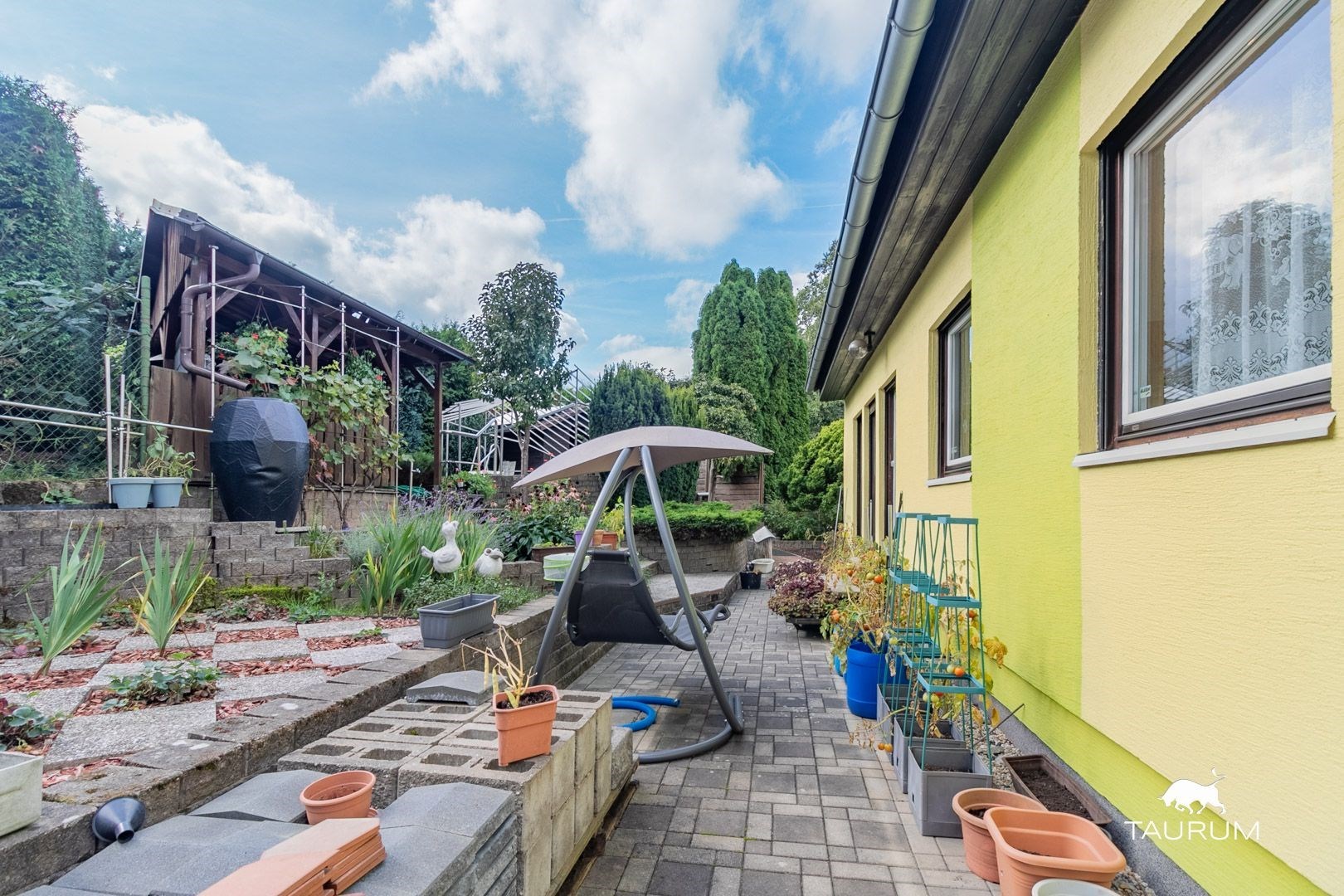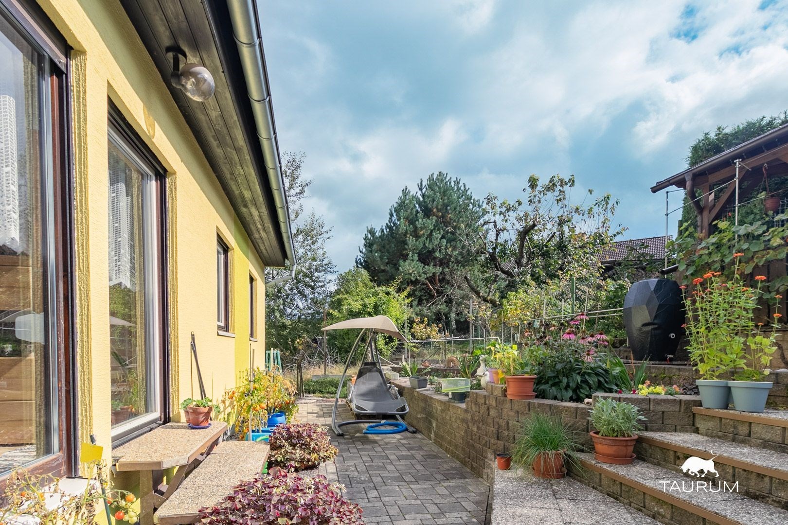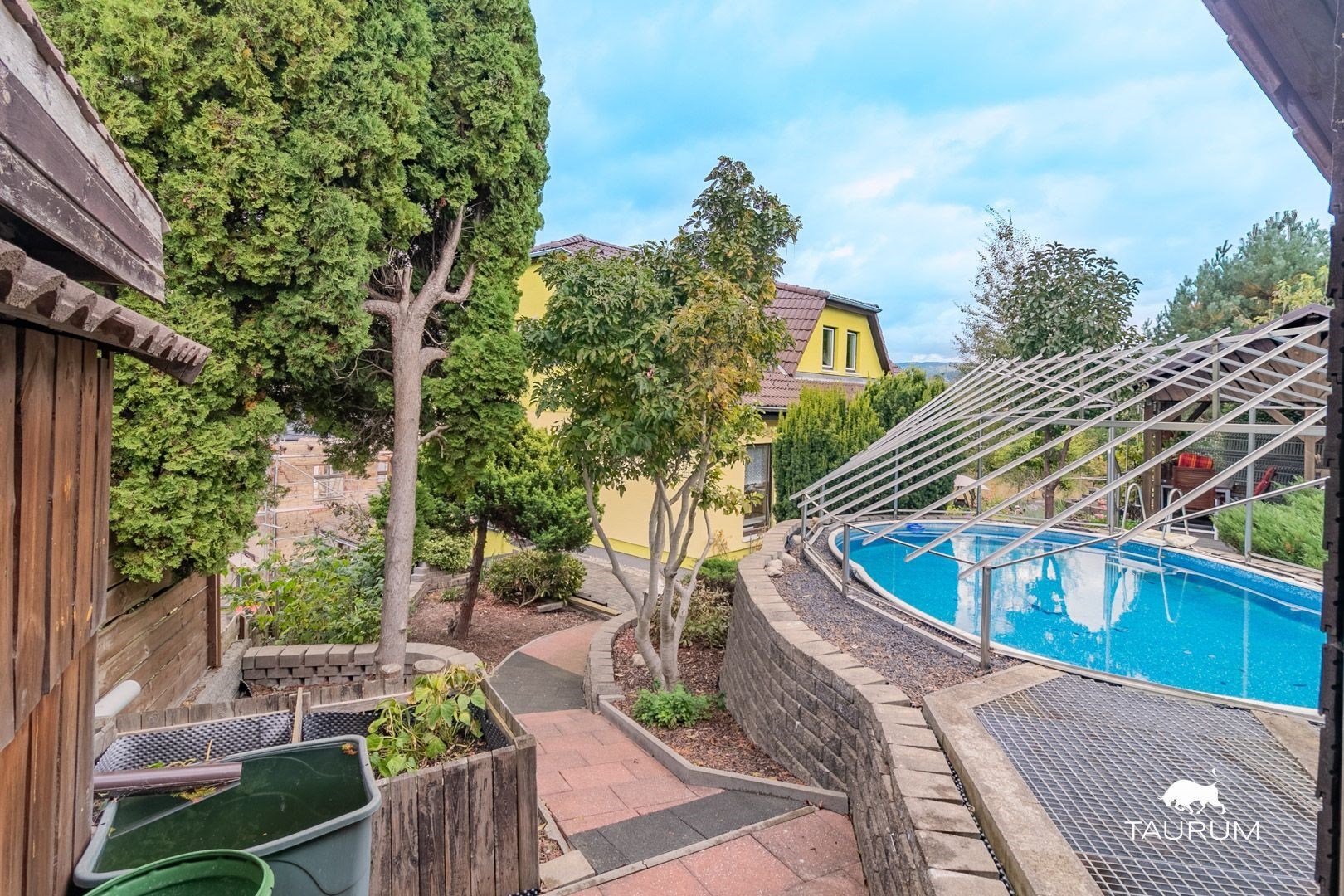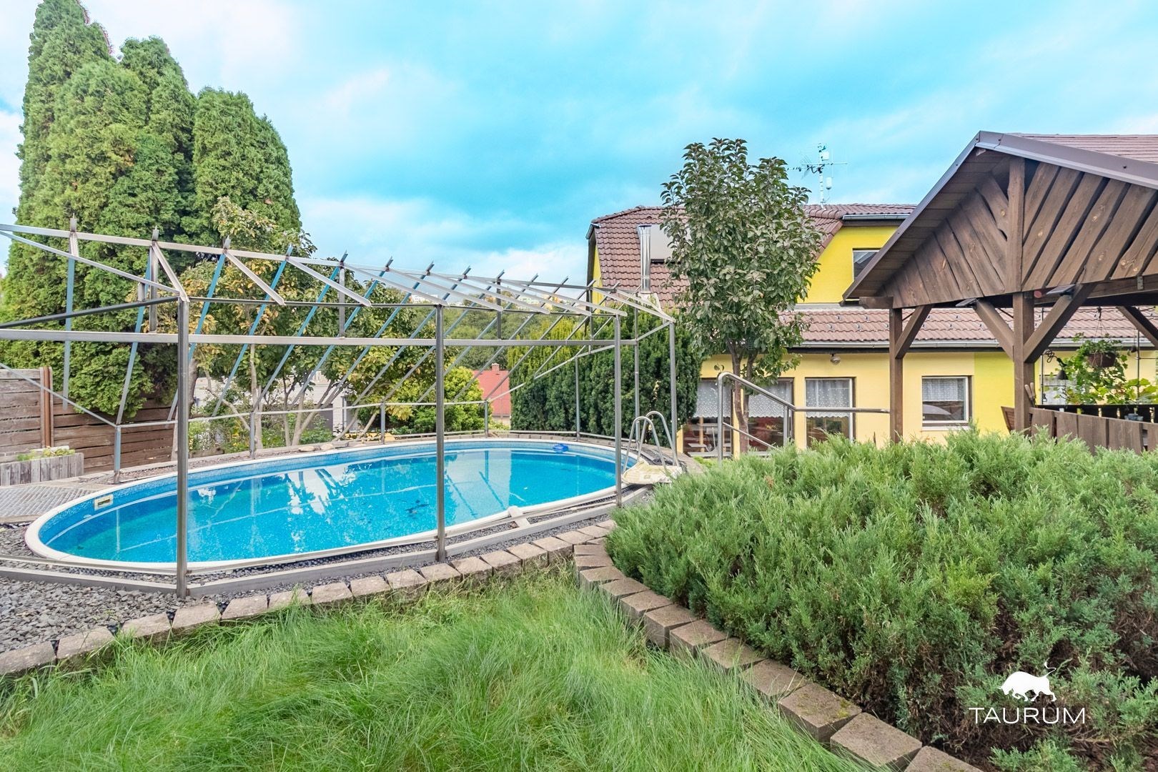 Z obývacího pokoje směrovaného na příjemnou jižní stranu, je možné přes francouzské okno vstoupit do krásné zahrady, plné květů a zeleně. Součástí zahrady je krytá pergola s posezením, zapuštěný bazén s pískovou filtrací a solárním ohřevem. V zahradním domku pak schováte vše potřebné nářadí a náčiní.
