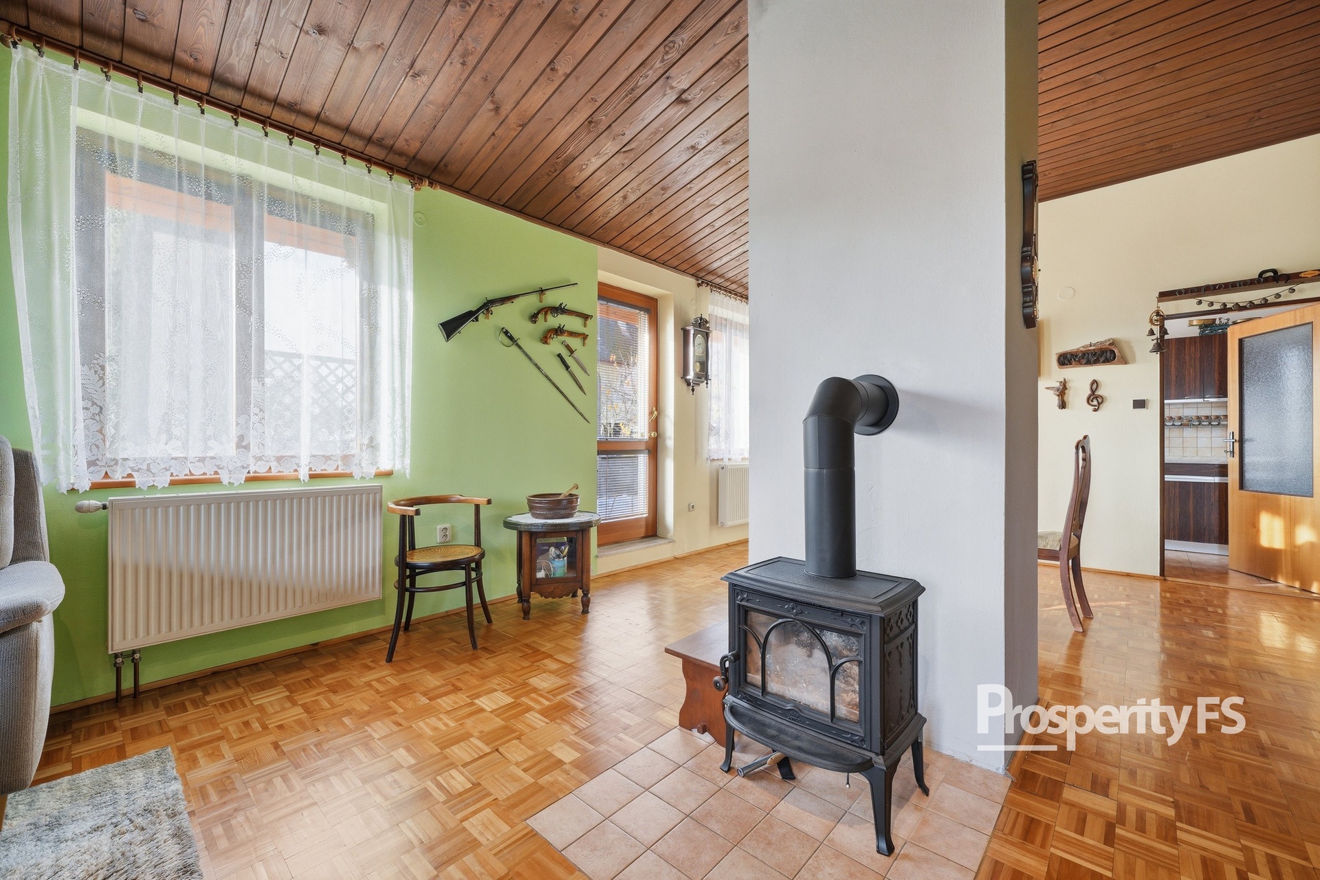 Prostorný obývací pokoj propojený s jídelnou (přes 30 m²), samostatná kuchyně s komorou, ložnice, dva další pokoje, koupelna a samostatné WC.