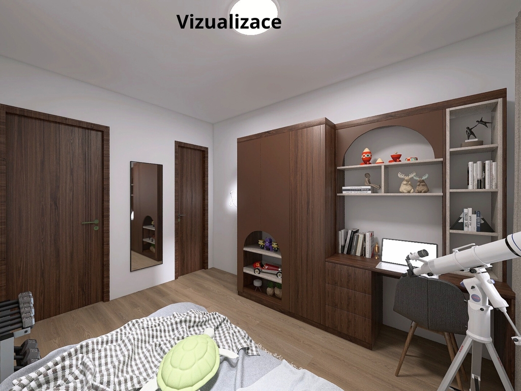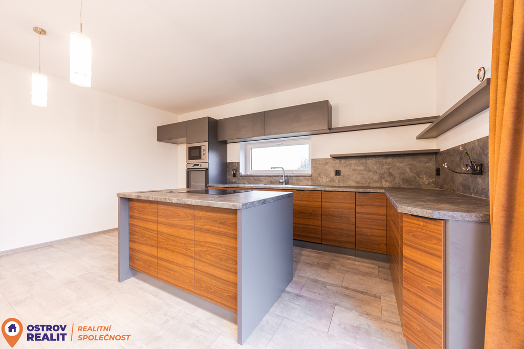 Luxusní kuchyň s ostrůvkem, pokoj, koupelna, šatna, podlahové vytápění, plastová trojskla,