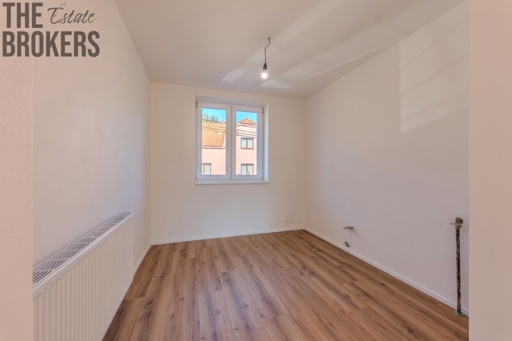 Uvnitř vás přivítá světlý, čistý a moderní interiér. Všude jsou nové rozvody elektřiny, vody i topení, čerstvé štuky a výmalby, sádrokartonové podhledy a nové dveře. Podlahy byly vybudovány úplně od základů a nově je pokrývá kvalitní vinyl, který kombinuje praktičnost a vysokou odolnost. V kuchyni je připravená přípojka pro linku podle vašich představ, v obývacím pokoji najdete termostat i možnost připojení krbu. Koupelna je zcela nová – moderní obklady, sanita i rozvody. Z hlavní ložnice je přímý vstup na zrekonstruovaný balkon (8 m²), který má novou hydroizolaci, dlažbu i zábradlí. Ve sklepě je jedna obyvatelná místnost s okny a technická místnost.