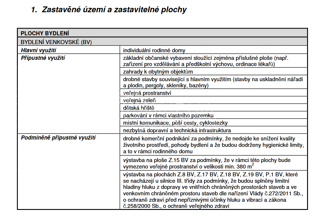 774 m2 se jedná o stavební pozemek (BV) - Bydlení venkovské (parcela 959/2, 959/4, 959/8)