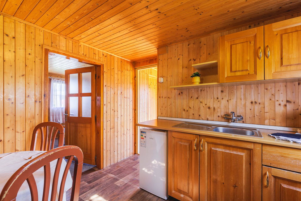Stávající dispozice umožňuje ubytování až pro 64 hostů ve 15 stejných čtyřlůžkových pokojích, každý s vlastním sociálním zázemím a balkonem orientovaným do krajiny. Součástí areálu je také samostatný apartmán, který je nyní využíván pro personál, ale lze jej jednoduše upravit pro další hosty. Celková užitná plocha objektu přesahuje 1 200 m², parkovací plocha pojme přibližně 20 automobilů a celý areál působí čistě, udržovaně a připraveně k provozu.