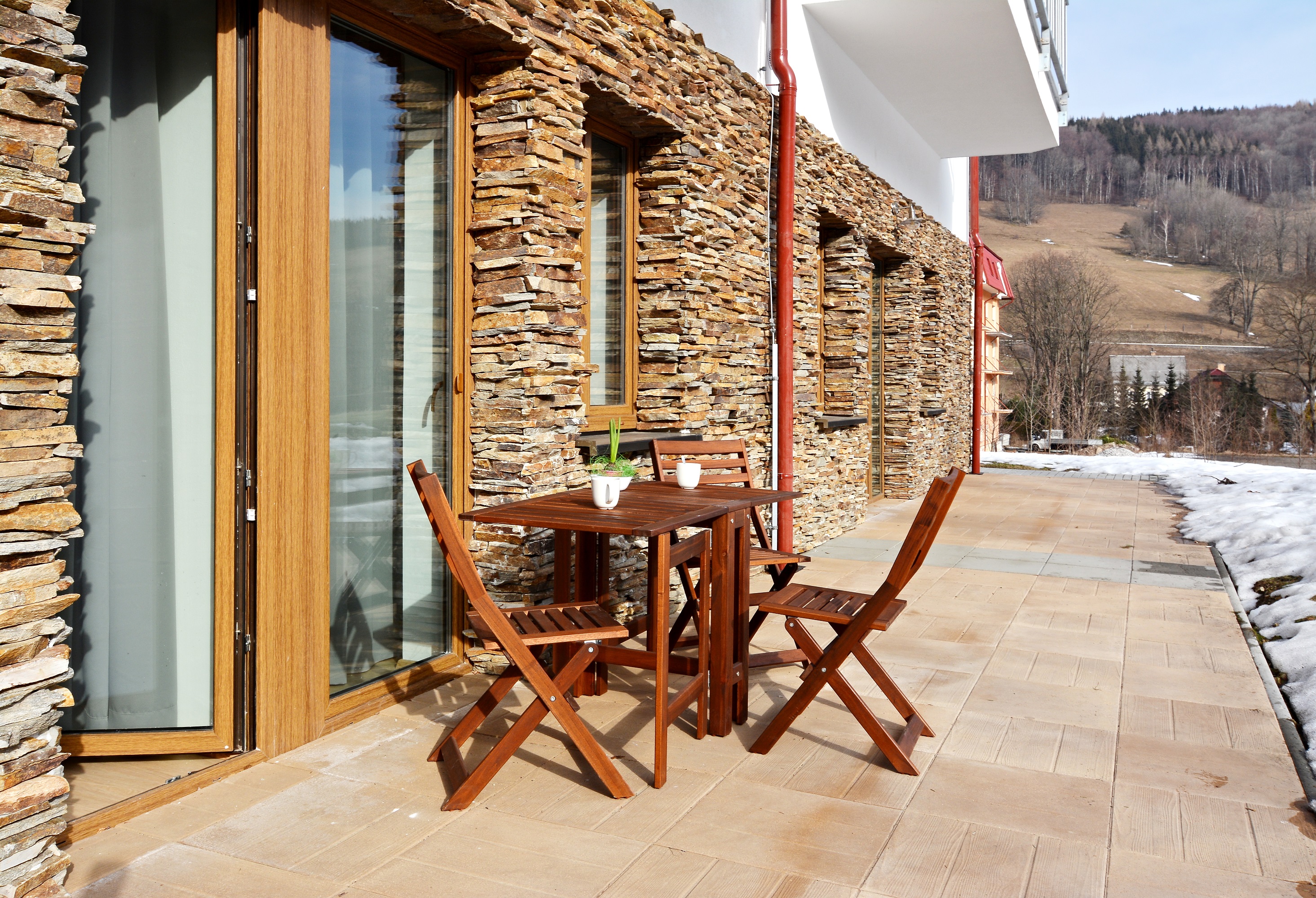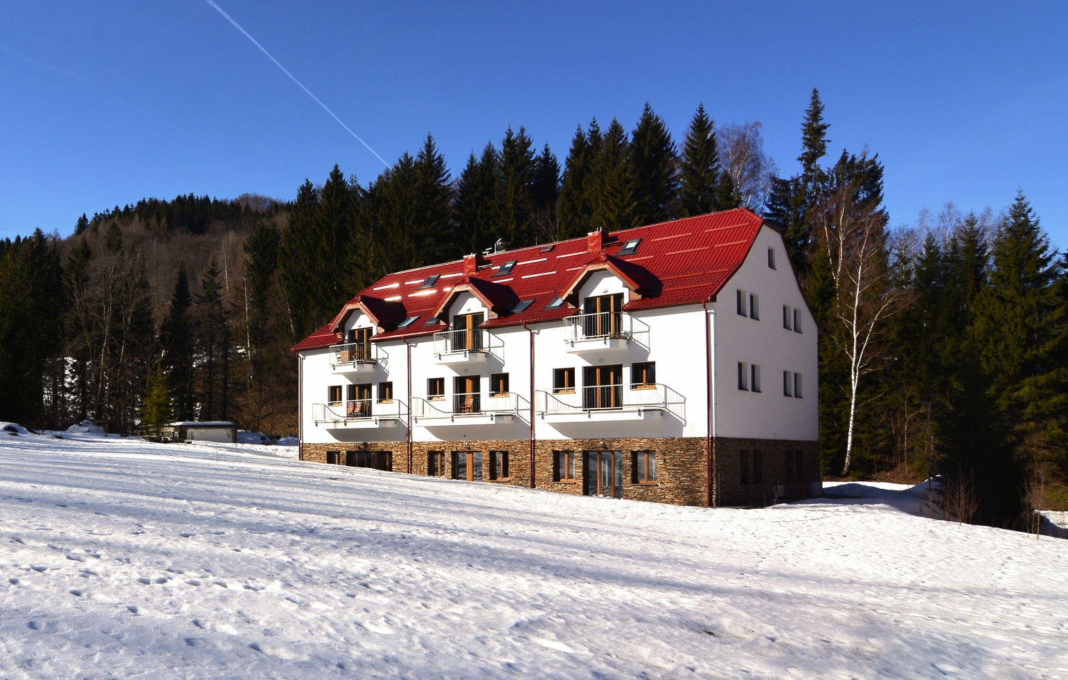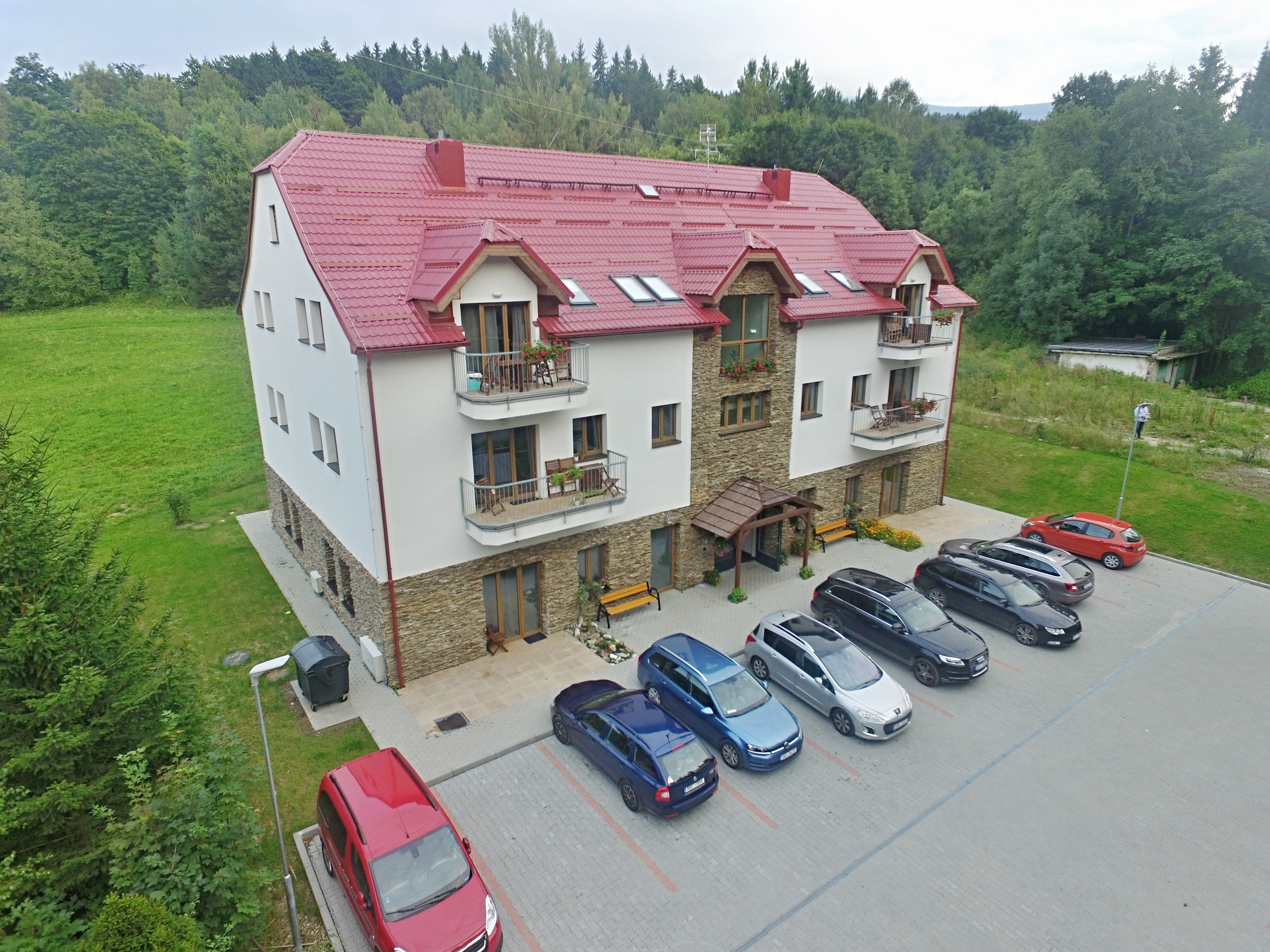Apartmánový dům disponuje 15 apartmány, které byly dokončeny v roce 2018. Apartmány mají ideální polohu pro letní i zimní aktivity v přírodě. Nacházejí se v klidném horském prostředí na pomezí Jeseníků a Kralického Sněžníku, 6-9 km od lyžařských středisek Ramzová, Ostružná a Petříkov, 9 km od Jeseníku, 24 km od Červenohorského sedla. V apartmánu je obývací pokoj s kuchyňským koutem, koupelna se sprchovým koutem a WC. Kuchyňská linka je vybavena indukční varnou deskou, digestoří, mikrovlnnou troubou s grilem, myčkou nádobí a velkou lednicí s mrazákem. V obývacím pokoji je velká manželská postel z masivu s luxusní pohodlnou matrací. Nábytek v pokoji je z masivního buku. Z pokoje je výstup na terasu před parkovištěm. Podlahové vytápění a ohřev TUV zajišťuje vlastní plynový kotel. Apartmán má vlastní měřidla elektřiny, plynu a vody. Vstup do objektu i apartmánu je možný elektronickým klíčem nebo aplikací ve smartphonu. Schodiště a parkoviště jsou monitorovány kamerovým systémem. Apartmán má vlastní elektronický zabezpečovací systém napojený na pult centrální ochrany. V objektu je společná lyžárna / kolárna. O objekt se stará správce. Zajištěn úklid společných prostor. Na fotografiích jsou typové apartmány v objektu. Nábytek a vybavení na snímcích odpovídá skutečnosti, orientace místnosti a uspořádání nábytku na fotografiích se nemusí shodovat s pozicí místnosti v půdorysu.
