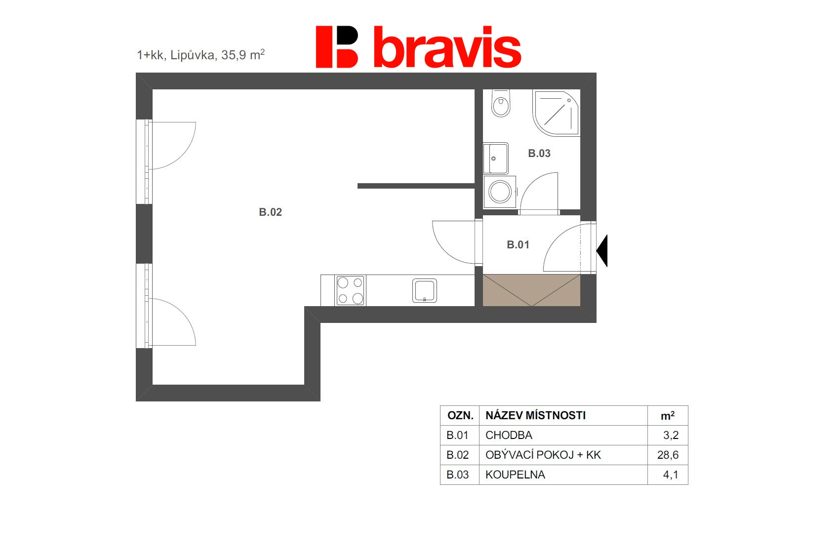 | Dispozice/podlahová plocha: | 1+kk/40 m² |