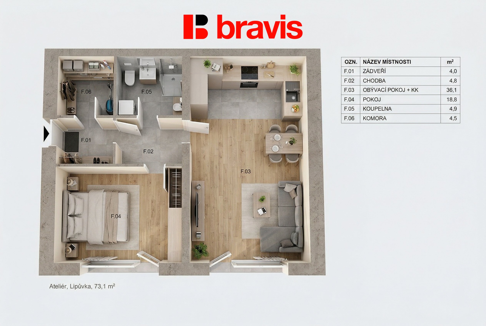 | Dispozice/podlahová plocha: | 2+kk/73 m² |
