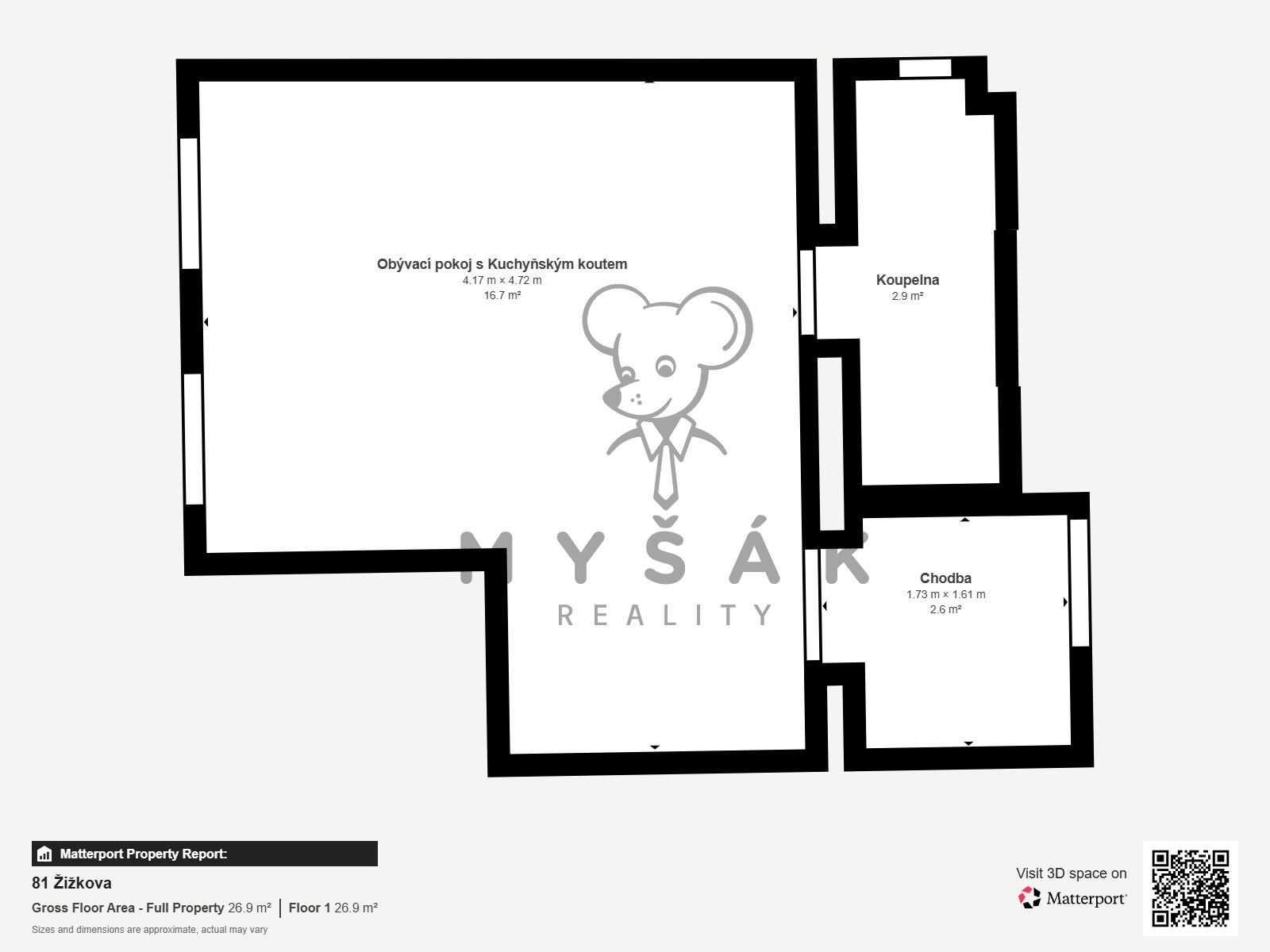 | Dispozice/podlahová plocha: | 1+kk/26 m² |