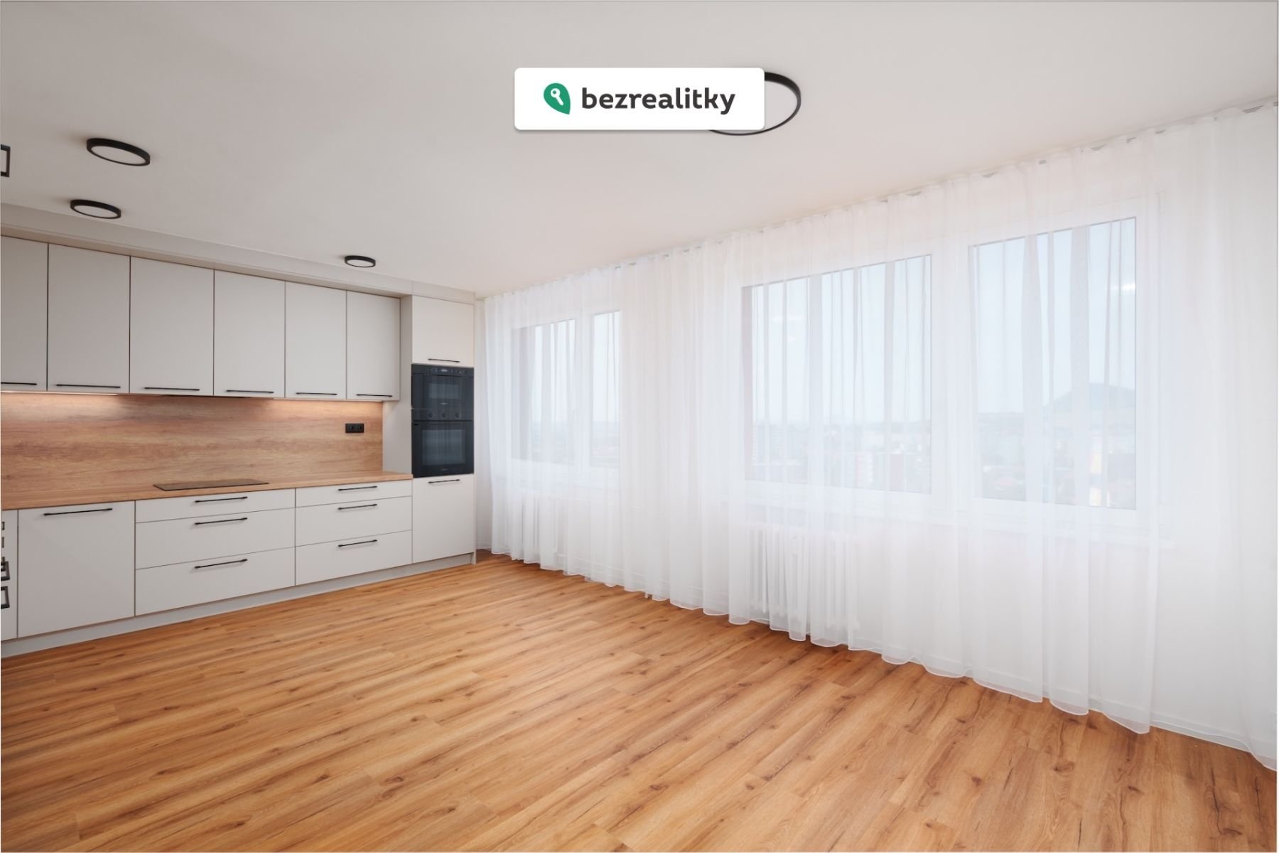 Dominantou bytu je velkorysý obývací pokoj s kuchyní o ploše cca 30 m² s výhledem na celé město, který se jen tak neokouká. Kuchyňská linka je vyrobena na míru, osazena vestavěnými spotřebiči. Okna jsou kompletně odborně seřízená profesionální firmou.