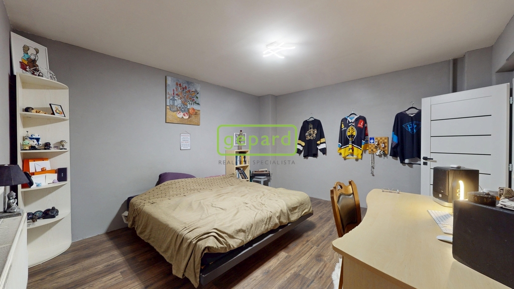 První patro domu prošlo kompletní rekonstrukcí – byla zde obnovena elektroinstalace, jističe, podlahy, okna i dveře, stejně jako koupelna a samostatná toaleta. Nachází se zde ložnice, dětský pokoj, obývací pokoj, kuchyň s keramickou dlažbou, koupelna se sprchovým koutem, samostatné WC, technická místnost a vstupní chodba. Druhé patro nabízí tři menší pokoje, jeden větší pokoj, obývací pokoj, kuchyň a koupelnu s vanou. Podlahy v horním patře jsou řešeny kombinací OSB desek a koberců, v kuchyni je na betonu položeno lino a v koupelně dlažba.