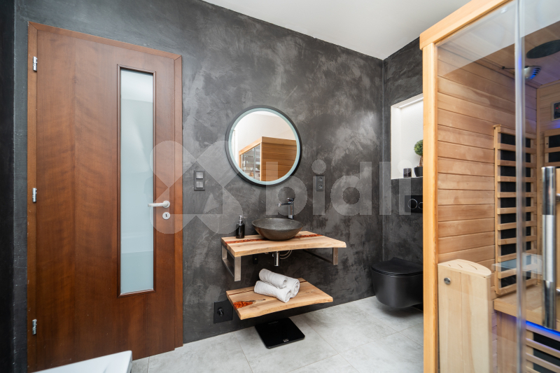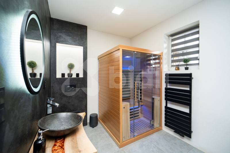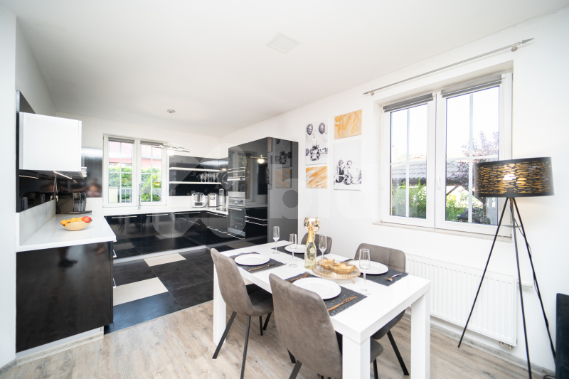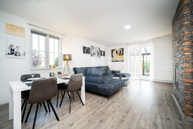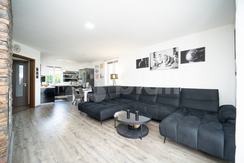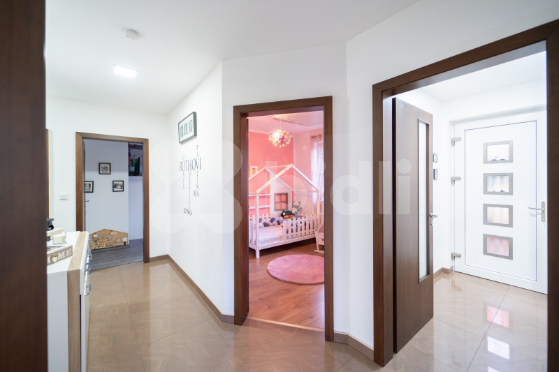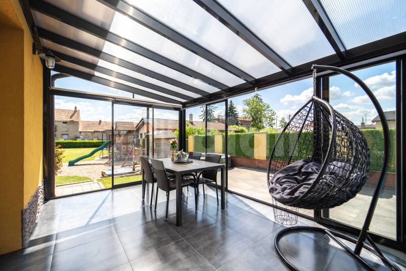 Dům je dispozičně řešen jako 4 + kk. Velký obývací pokoj je propojen s krásným kuchyňským koutem s východem do zimní zahrady, která je konstrukčně vyrobena z hliníku. Tím získáváte další užitnou plochu nemovitosti. Dva dětské pokoje, ložnice, koupelna s podlahovým vytápěním a infrasaunou pro Váš odpočinek, prádelna a technická místnost.