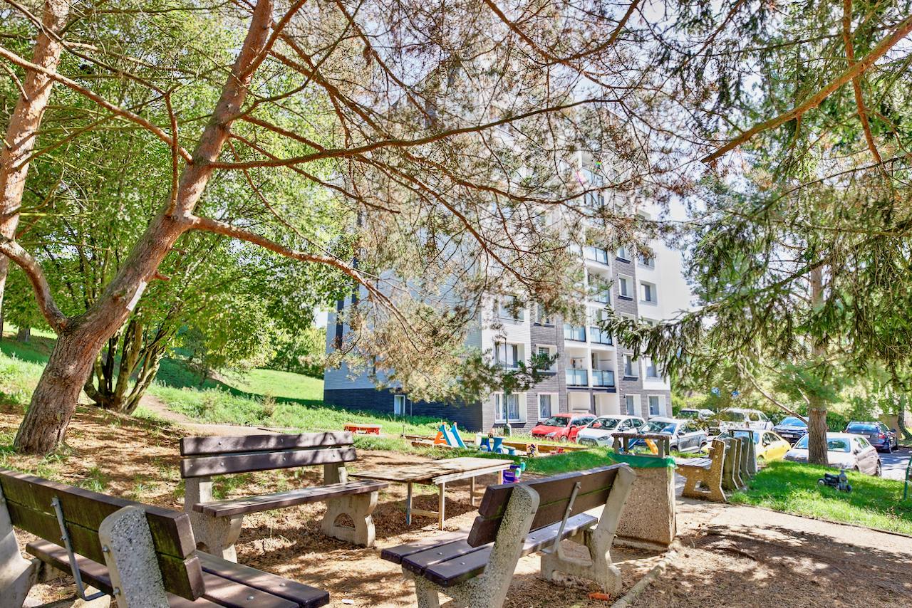 Praktické benefity: v předsíni a kuchyni je prostor pro vestavěné skříně, na společné chodbě před vstupem do bytu lze pohodlně odstavit kočárek nebo umístit botník. K dispozici je také vlastní sklepní kóje v přízemí domu a možnost využívat společnou kolárnu a sušárnu.