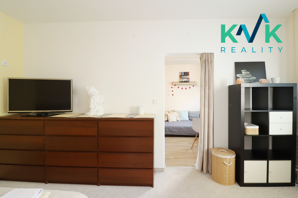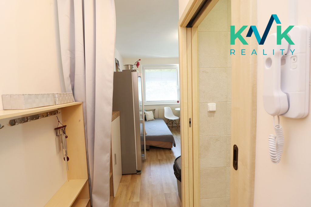 Dispozice bytu je promyšlená a poskytuje komfortní zázemí pro jednotlivce, pár či jako výhodnou investici k pronájmu.
