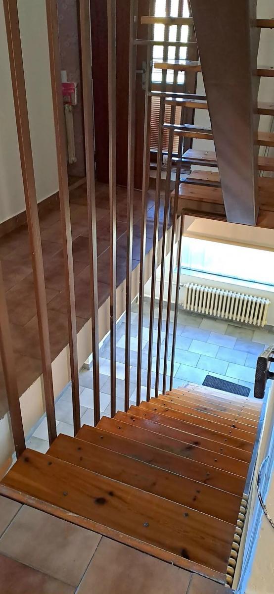 2.NP - ze schodiště je vstup do bytu o velikosti 3+1. Z chodby je vstup na balkon, samostatné WC, do spíže a do kuchyně s jídelnou. V kuchyni je kuchyňská linka s myčkou a elektrickou troubou. Z kuchyně vstup do pokoje s krbem, odkud je vstup na balkon. Komín je vyvložkovaný a vyčištěný, v komíně je krbová vložka na topení tuhými palivy. Z chodby je vstup do dalších dvou pokojů a do koupelny, která byla zrekonstruovaná před pár lety.
