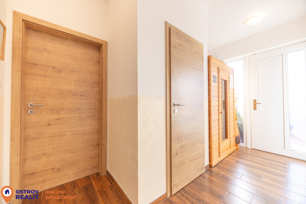 Velkou přidanou hodnotou je druhá samostatná stavba – menší dům na vrutech o dispozici 2+kk s vlastní koupelnou se sprchovým koutem. Tento objekt je od hlavní stavby oddělen plotem, takže zajišťuje dostatek soukromí jak majitelům, tak ubytovaným hostům.