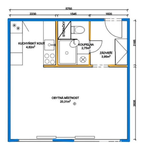 | Dispozice/podlahová plocha: | 1+kk/36 m² |
