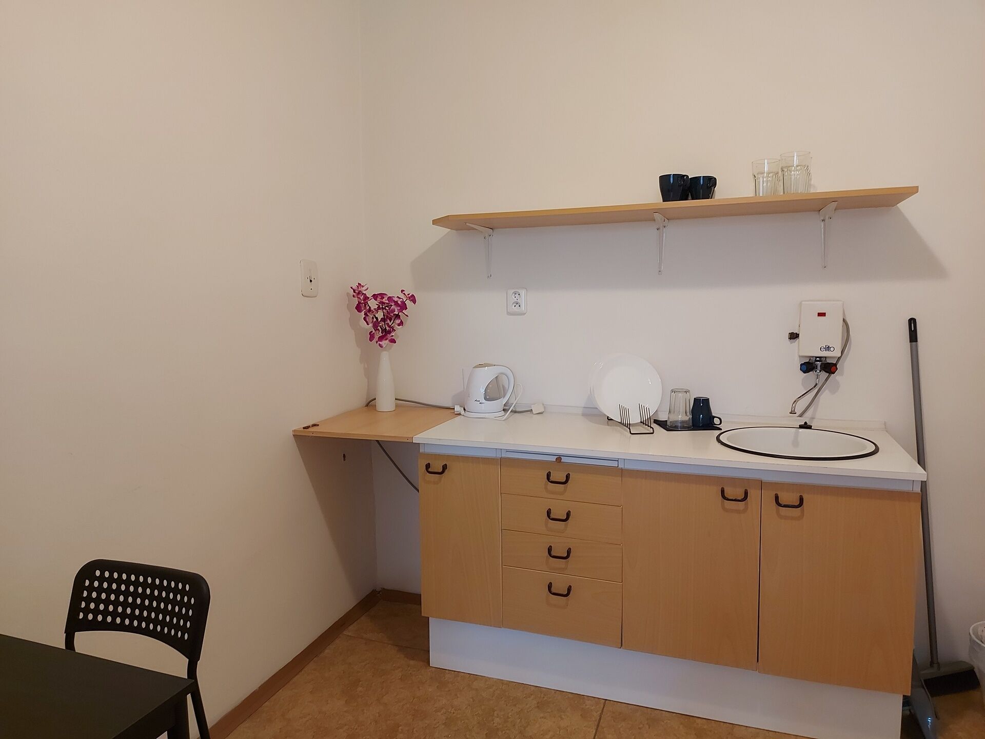 Soubor dvou samostatných kanceláří se zázemím o celkové výměře 48,3m2 v patře komerčního domu, ve kterém je provozována jak obchodní tak kancelářská činnost. V kancelářích je nové osvětlení, koberec, síť pro internetové připojení. První kancelář, přístupná ze společné chodby v patře, má výměru 16,6m2. Druhá kancelář, se vstupem ze stejné chodby, má výměru 23,8m2. Na tento prostor navazuje menší místnost s kuchyňkou o výměře 8m2. Zázemí- WC se nachází na stejném patře a je společné i pro sousední kancelář. Zálohy na topení, vodu, elektřinu i odpady činí 5.000Kč/měs. Kauce 25.000 Kč + provize pro RK. Prostor volný ihned.