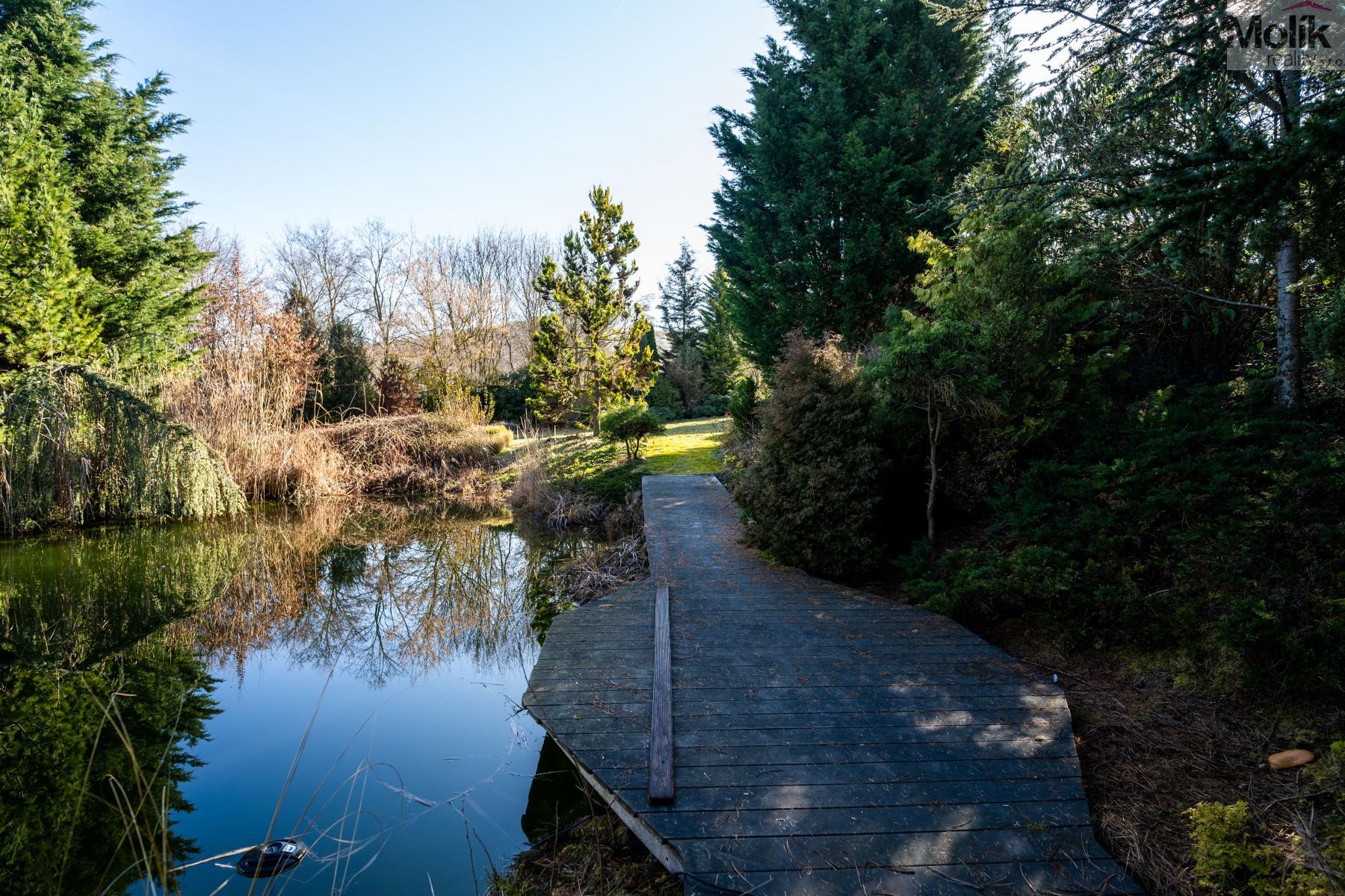 Patro domu nabízí čtyři prostorné pokoje a hlavní koupelnu s plně funkční saunou. Praktickou stránku bydlení doplňuje garáž s elektrickými vraty. Dominantou celého sídla je však jeho exteriér. Na rozlehlém pozemku, který díky své ploše přes 3 500 m and sup2; poskytuje maximální soukromí, se nachází vzrostlé jehličnany, borovice i plodící jabloně. Zahrada nabízí krytý bazén s filtrací, jezírko s vlastním čistícím systémem a splachem, a také prostorný altán s grilem pro společné chvíle. Součástí pozemku je také praktický zahradní domek na techniku. Velkou výhodou jsou dva samostatné vjezdy: jeden vede k domu a garáži, druhý zajišťuje pohodlný přístup přímo na plochu zahrady. Nemovitost se nachází v chráněné krajinné oblasti, což zaručuje bydlení v naprostém klidu a v těsném sepětí s přírodou.