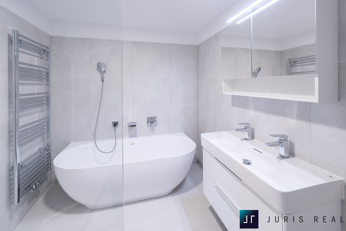 - nové zařizovací předměty v koupelně: velmi kvalitní designová vana za cca 50 000,- Kč, kvalitní a designový sprchový kout, vše se zařizovacími předměty Hans Grohe, nerezový žebřík napojený na systém plynového vytápění v bytě + el. podlahové topení v koupelně, ovládané digitálním termostatem.