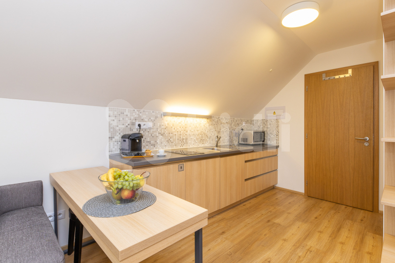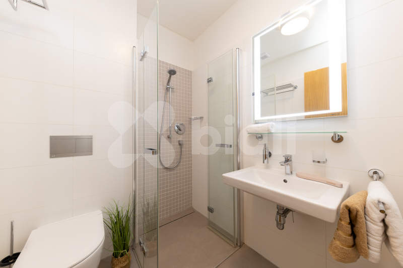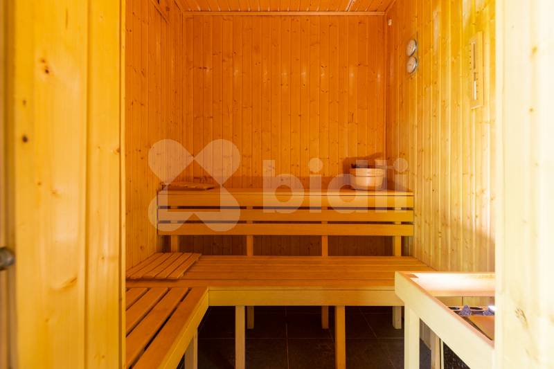 Dokonalému dispozičnímu řešení nemovitosti odpovídá i její nadstandardní vybavení. V přízemí umístněná společenská místnost s úžasným výhledem, vybavenou kuchyní, krbem, velkoplošnou TV i dataprojektorem s plátnem. Moderní a prostorné pokoje, dva dvoulůžkové, jeden třílůžkový, jeden čtyřlůžkový, každý s vlastním WC a sprchovým koutem. V podkroví je hala s posezením, dva komfortní apartmány 2+kk zařízené pohodlným kvalitním nábytkem, vybavenou kuchyní a sociálním zázemím. Také diskrétní přístup do půdního prostoru s osvětlením. Ve všech pokojích Smart TV i minibar a v celém objektu Wifi připojení. Celková kapacita ubytování je 20 osob. Nejníže, přesto na úrovni pozemku je stylový historický vinný sklípek, lyžárna kde oceníte vysoušeče obuvi, uzamykatelné skříňky, nebo pro cyklisty možnost úschovy jízdních kol. Přístup do tohoto zázemí je přímo z pozemku, nebo po vnitřním schodišti z chodby v přízemí. Vedle sklad a technická místnost, kde moderní kombinovaný kotel na tuhá paliva s automatickým dávkováním zajišťuje komfort ústředním vytápěním. Pro letní období, nebo jako záložní zdroj slouží plynový kotel na PB.