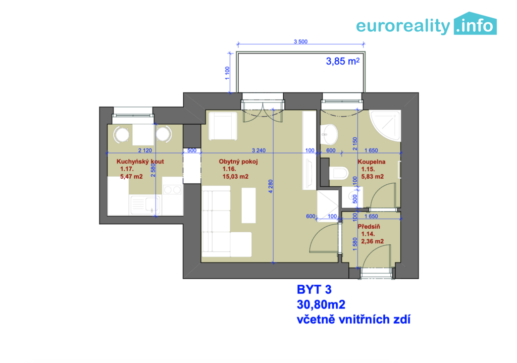 | Dispozice/podlahová plocha: | 1+1/50 m² |