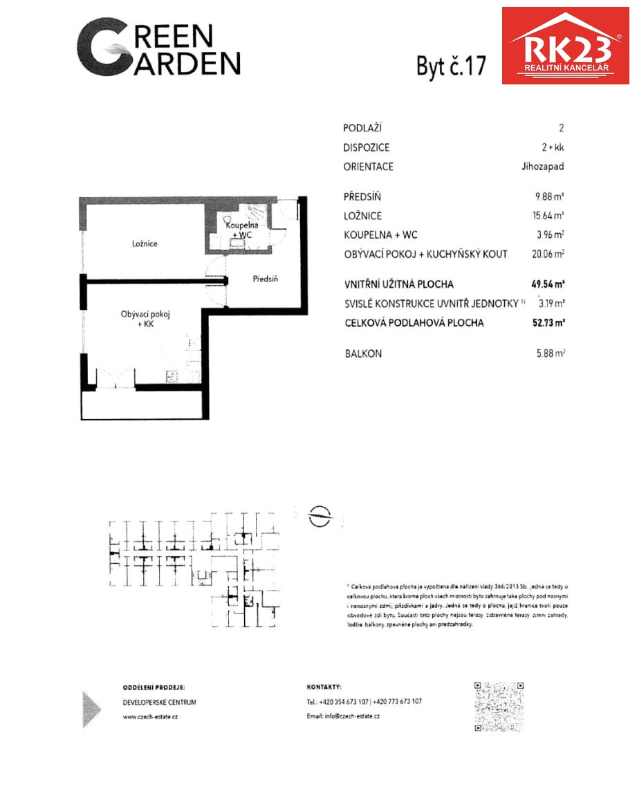 | Dispozice/podlahová plocha: | 2+kk/53 m² |