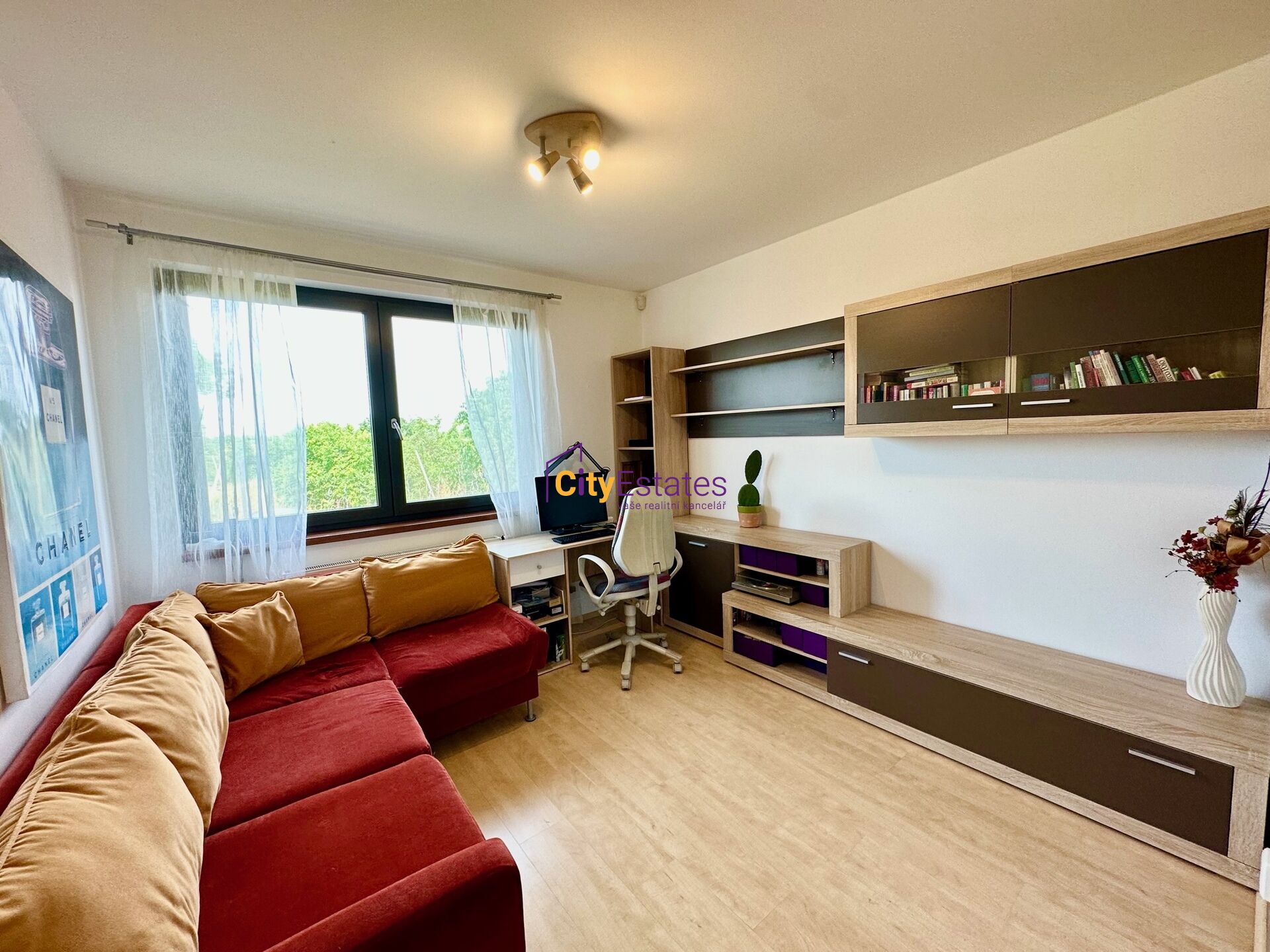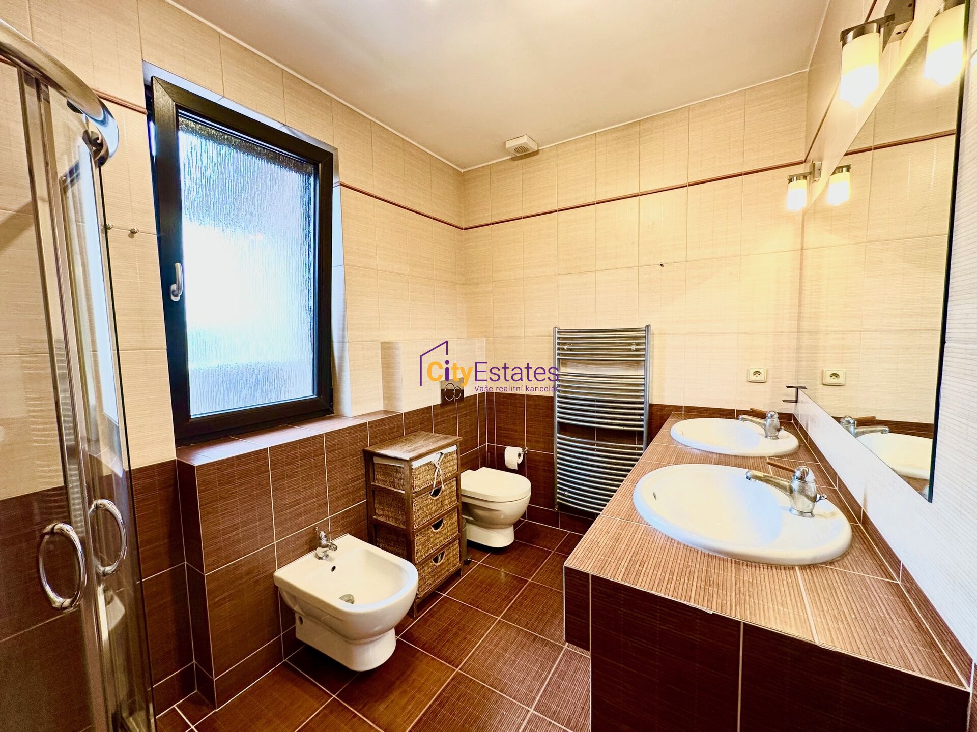 Prostorné 4+kk Vás zaujme svou promyšlenou dispozicí a především velkorysým obývacím pokojem s kuchyňským koutem a jídelní částí (47 m2). Kuchyňský kout je plně vybaven moderními spotřebiči, jídelní část je tak prostorná, že se sem vejde i nadstandartně velký jídelní stůl. Z obývací i jídelní části máte přímé vstupy na velkou zastřešenou terasu, kde můžete trávit letní večery. V obýváku je také vybudován zděný krb se zasklením.