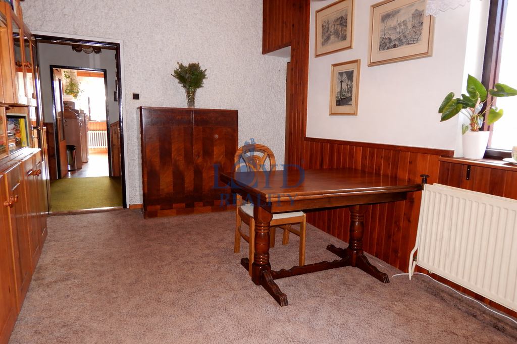 Dům je dispozičně řešen jako vícegenerační. V prvním nadzemním podlaží se nachází garáž s přímým vstupem do domu. Hlavní vstup vede přes chodbu, odkud je přístup do jídelny a samostatné toalety. Dále zde najdeme oddělenou část využívanou jako samostatný byt s ložnicí, koupelnou se sprchovým koutem, bidetem a toaletou (rekonstrukce koupelny proběhla před cca 13 lety). V přízemí je také samostatná kuchyň a prostorný obývací pokoj s krbem, který vytápí nejen obývací prostor, ale i zmíněnou koupelnu.