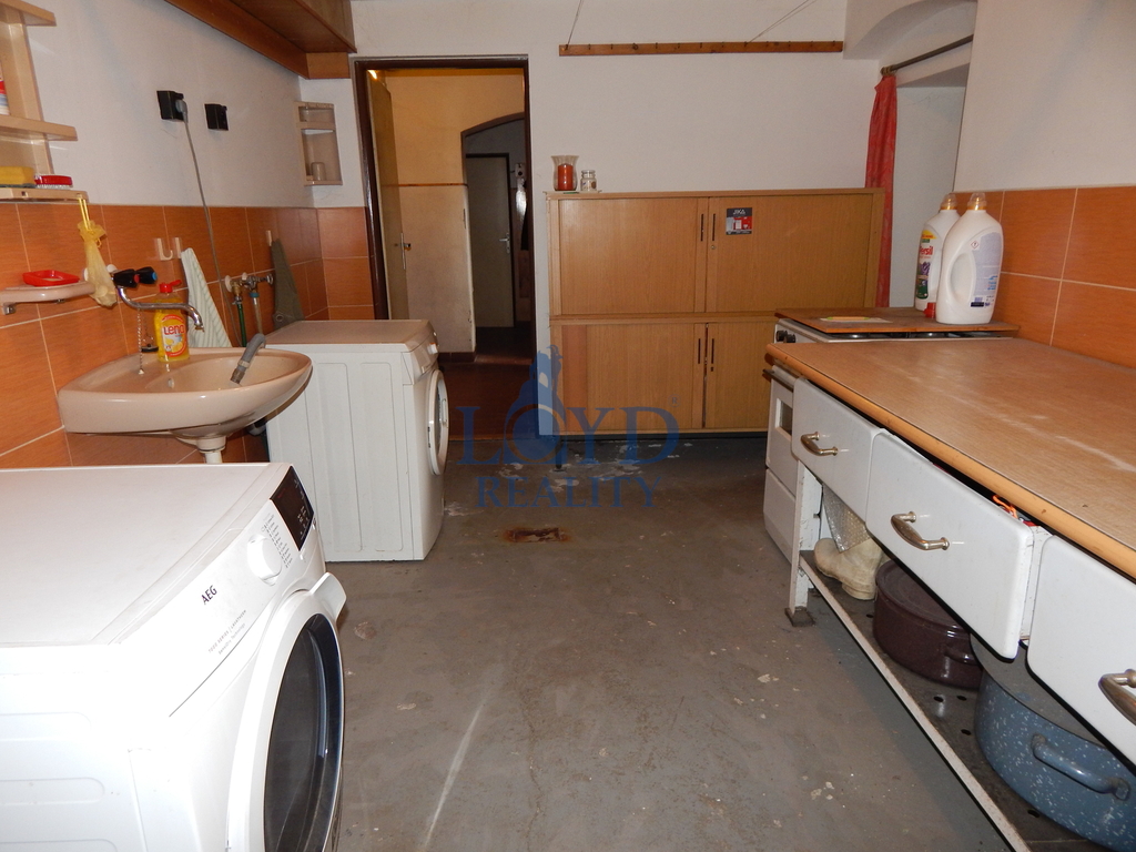 Dům je částečně podsklepený o ploše 65m2 – k dispozici je sklepní místnost, prádelna s toaletou, kotelna s kotlem na tuhá paliva (vytápění celého domu), uhelná dílna, prostor na uskladnění dřeva a vstup na zahradu.