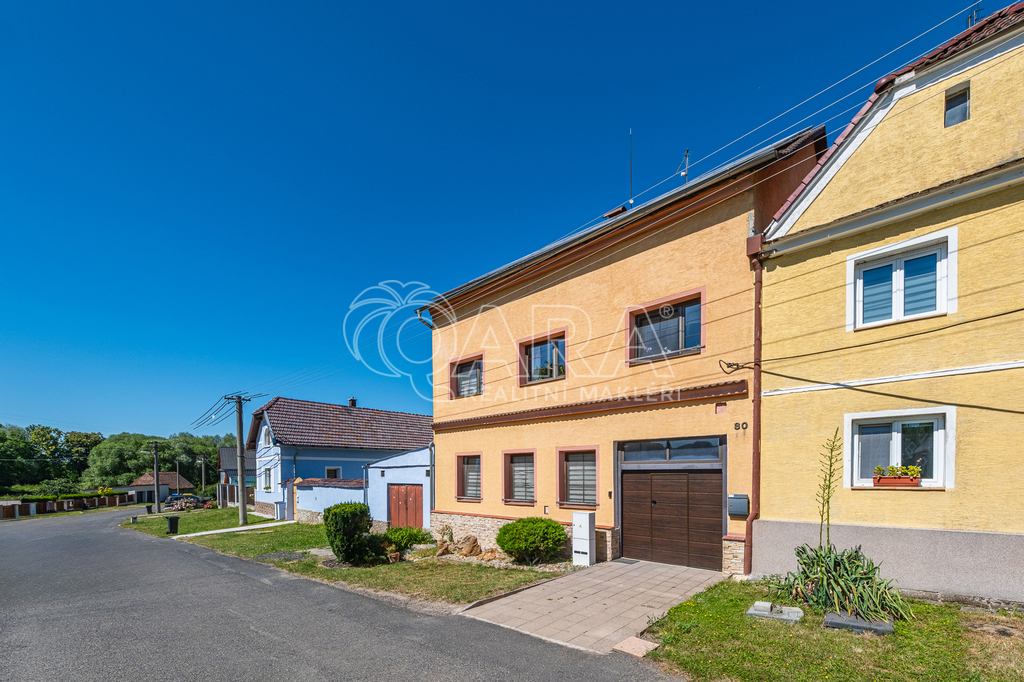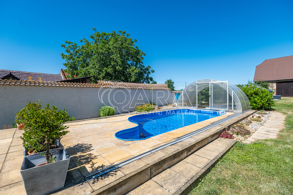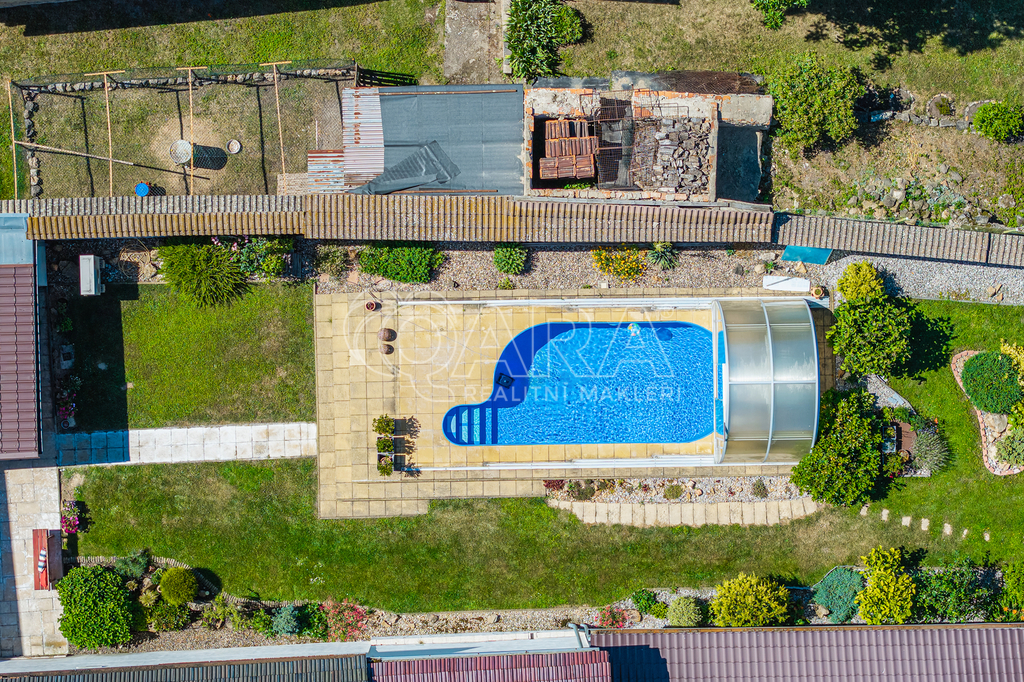Dnešní dispozice domu je 1+kk v přízemí a v prvním patře byt 3+kk, garážové stání udělané z bývalého průjezdu domu, venkovní posezení s pergolou, krytý bazén se slanou vodou, udržovaná okrasná i užitková zahrada a jako bonus kamenná stodola, a k tomu fotovoltaika a tepelné čerpadlo voda-vzduch.