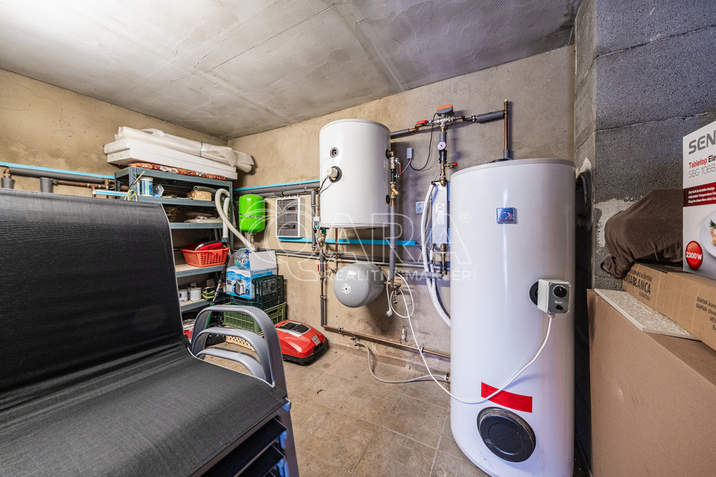 Pěkné že? Jak jsem psala, dům je vyňuňán do posledních detailů. Pojďme dále. Jsme stále v přízemí, kde je umístěna i velká technická místnost s pračkou a sušičkou, sloužící i jako sušárna a částečně sklad. Z předsíně se vchází do sklepení domu. a pak do prvního patra. Velká předsíň propojuje byt 3+kk, koupelnu, toaletu a malou spižírnu a zároveň se vstupuje na prostornou půdu, kde je možnost vestavby a dalšího případného bytu.