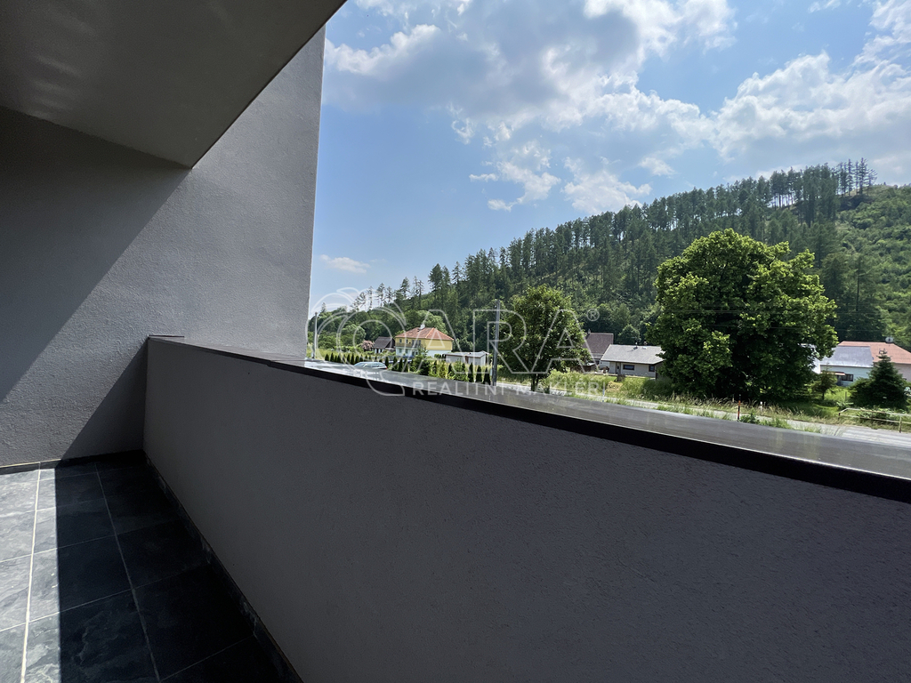 Byt je vybaven moderní kuchyňskou linkou v bílé barvě s granitovým dřezem, černou baterií a dvouplotýnkovou sklokeramickou deskou Amica. V koupelně najdete sprchový kout s černou baterií, závěsné WC Geberit a umyvadlo se skříňkou. V obytné části je laminátová podlaha v šedém odstínu, v kuchyni, chodbě a koupelně pak stylová antracitová dlažba.