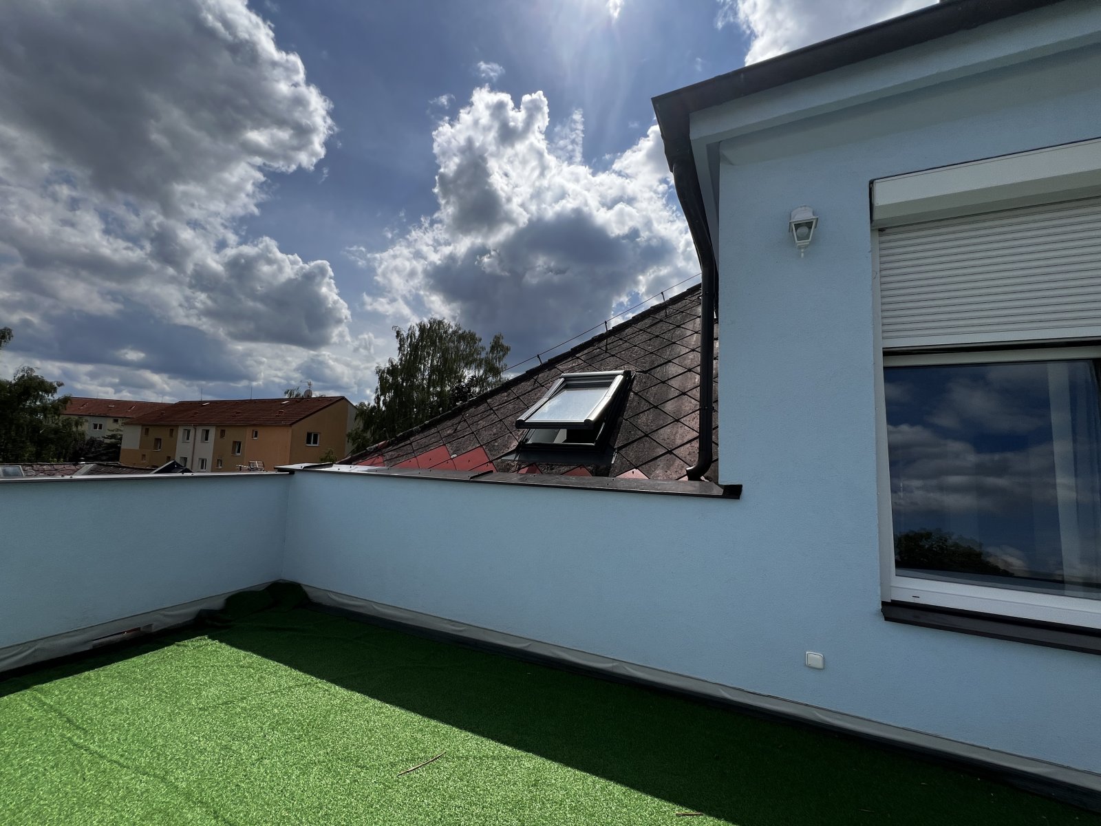 V zastoupení majitele Vám nabízíme k pronájmu slunný byt po kompletní rekonstrukci (2021) o výměře 90 m² podlahové plochy. Byt se nachází ve 3. patře domu v ulici Jiráskova v Milevsku. Dispozice bytu je 3+kk s velice prostornou terasou o výměře 47,9 m². Byt tvoří vstupní prostorná chodba, koupelna, pokoj, ložnice, prostorný obývací prostor se vstupem na terasu a do kuchyně s jídelnou. Kuchyňská linka je zařízená základními spotřebiči (varná deska, trouba, digestoř). Koupelna je vybavená vanou, umyvadlem a toaletou. Veškeré ostatní zařízení a nábytek patří nájemníkům, kteří v případě zájmu vybavení přenechají (za poměrnou část) novému nájemci. Přímo naproti domu se nachází školka, dětské hřiště, park. V docházkové vzdálenosti je od domu pohodlná dostupnost do centra města i přírody. Byt je díky své dispozici a lokalitě ideální pro rodinu. K nastěhování od 1.2.2026. Pro více informací a sjednání prohlídky této nemovitosti mě neváhejte kontaktovat.