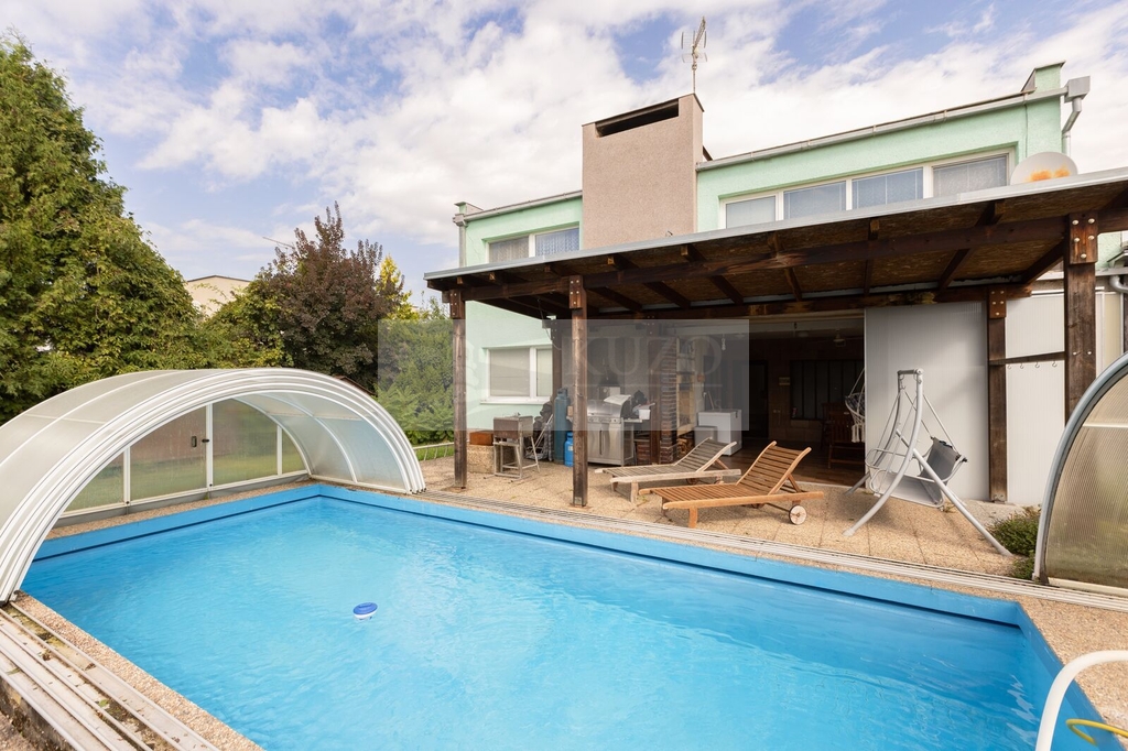 Zahrada: Velká soukromá zahrada je oázou klidu a relaxace. S bazénem, pergolou a krytým posezením s venkovním krbem je ideální pro rodinné sešlosti a grilování. Díky vzrostlé zeleni je zajištěno maximální soukromí. Spodní část pozemku přechází do svažitého lesního porostu.