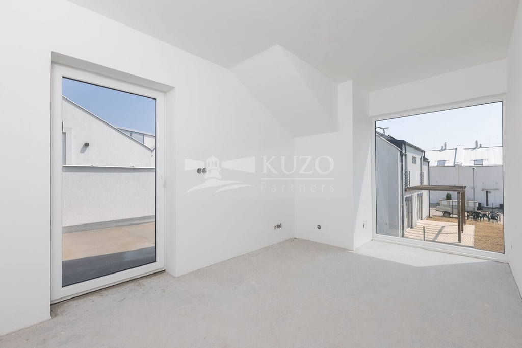 Po schodišti do prvního patra, jsou dva samostatné pokoje o výměře přes 10 m² a ložnice s téměř 20 m², koupelna s vanou a toaletou, dále navíc zmiňovaná prostorná terasa o užitné ploše 29 m².