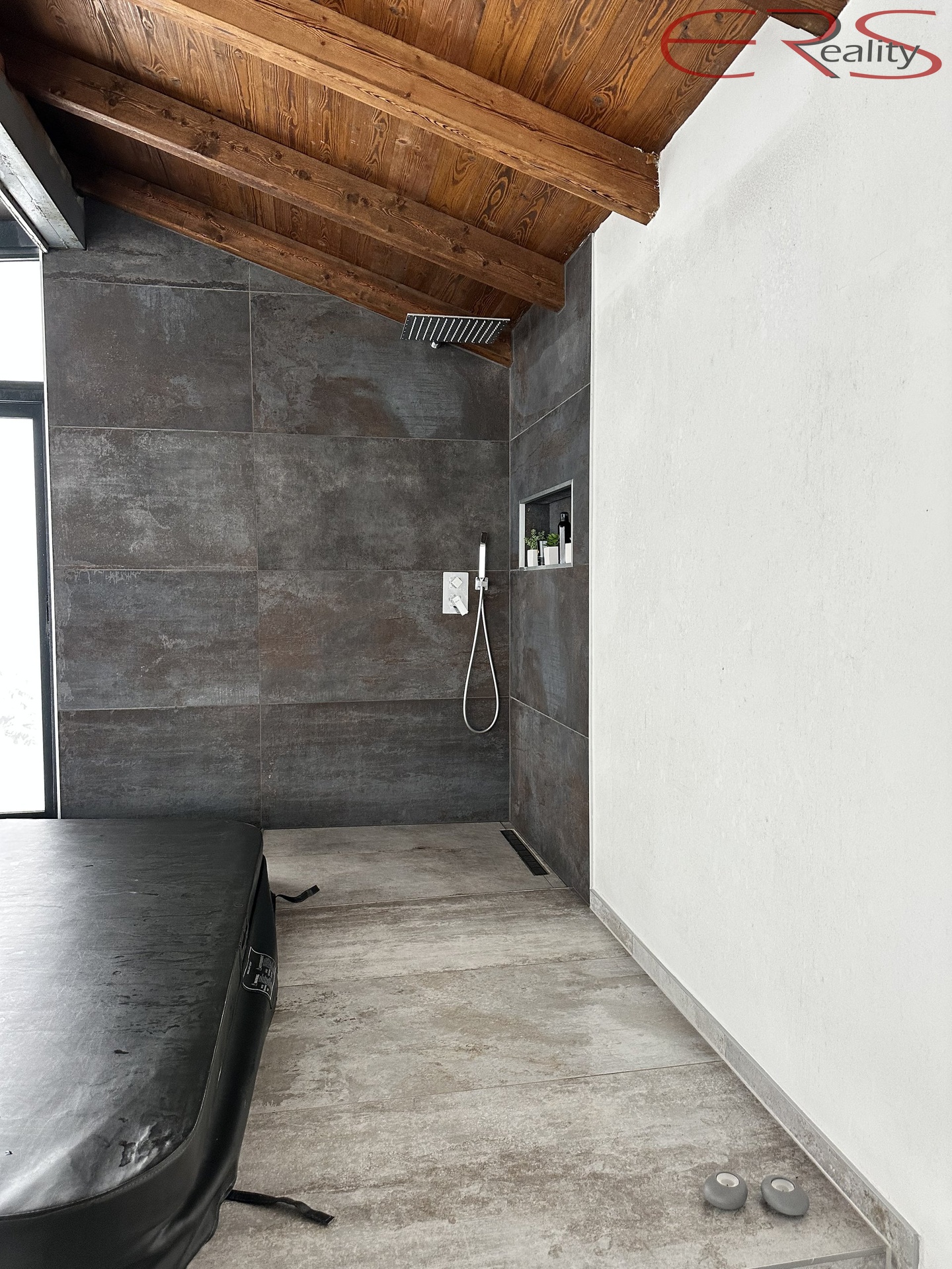 Součástí nemovitosti je samostatný wellness objekt z roku 2021 o zastavěné ploše cca 110 m², navržený jako plnohodnotné zázemí pro celoroční odpočinek i zábavu. Už z exteriéru zaujme kombinací dřeva a velkých prosklených ploch, navazujícím letním posezením s grilem a praktičností provozu (ve sklepě je technologie cca 8 m²).