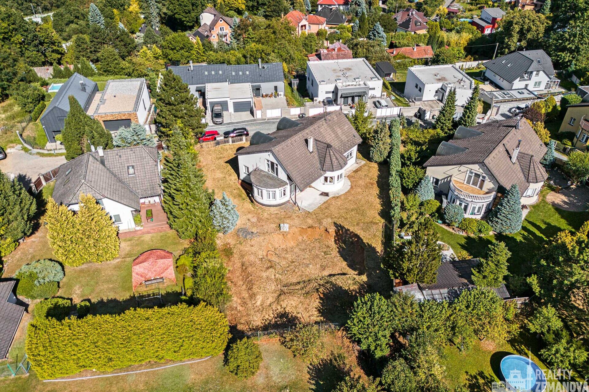 Zahrada o rozloze 1 078 m² byla založena zahradním architektem a pyšní se vzrostlými stromy. Součástí je i vyhloubený prostor připravený k vybudování bazénu nebo přírodního jezírka.