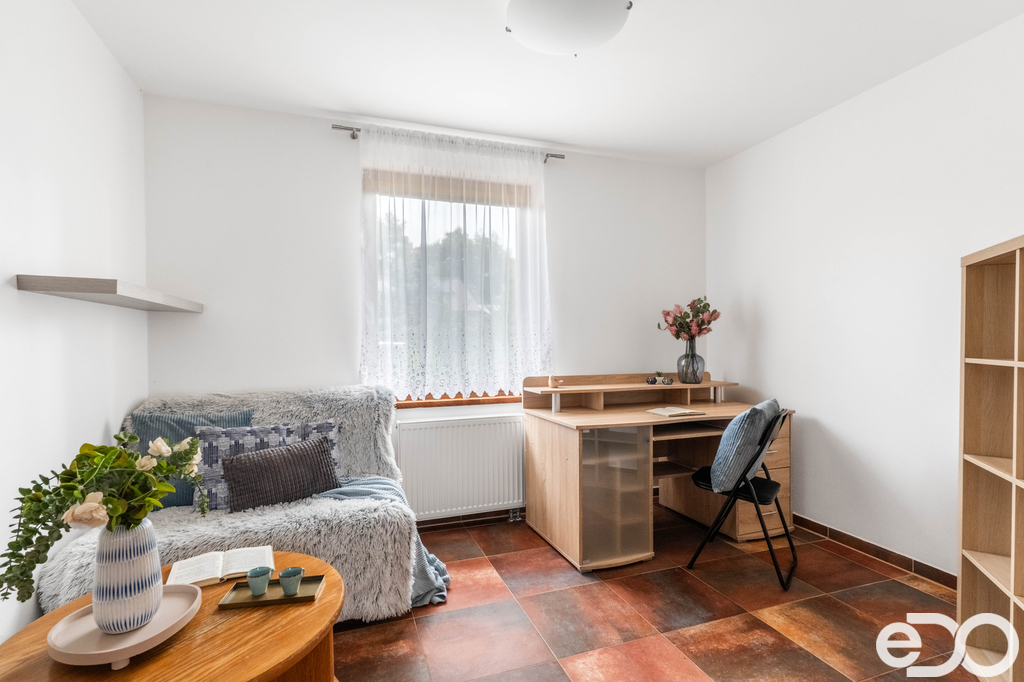 Dům je postavený v roce 2009. Je částečně vybavený nábytkem, kuchyňská linka má všechny vestavěné elektrospotřebiče včetně lednice s mrazákem. Plastová okna s vnitřními žaluziemi a elektricky ovládanými venkovními roletami a částečně s manuálními roletami. Na podlahách je plovoucí podlaha a dlažba, vytápění je řešeno podlahovým topením a radiátory napojenými na elektrokotel. K tomu je v domě krbová vložka s výměníkem a rozvodem tepla do všech místností, ohřev vody zajišťuje bojler. Dispozice nabídne prostorný obývací pokoj s krbem propojený s kuchyní a jídelnou, ložnici, dva dětské pokoje, pracovnu, šatnu, koupelnu s vanou i sprchou, samostatné WC, technickou místnost a přímý vstup z dvojgaráže.
