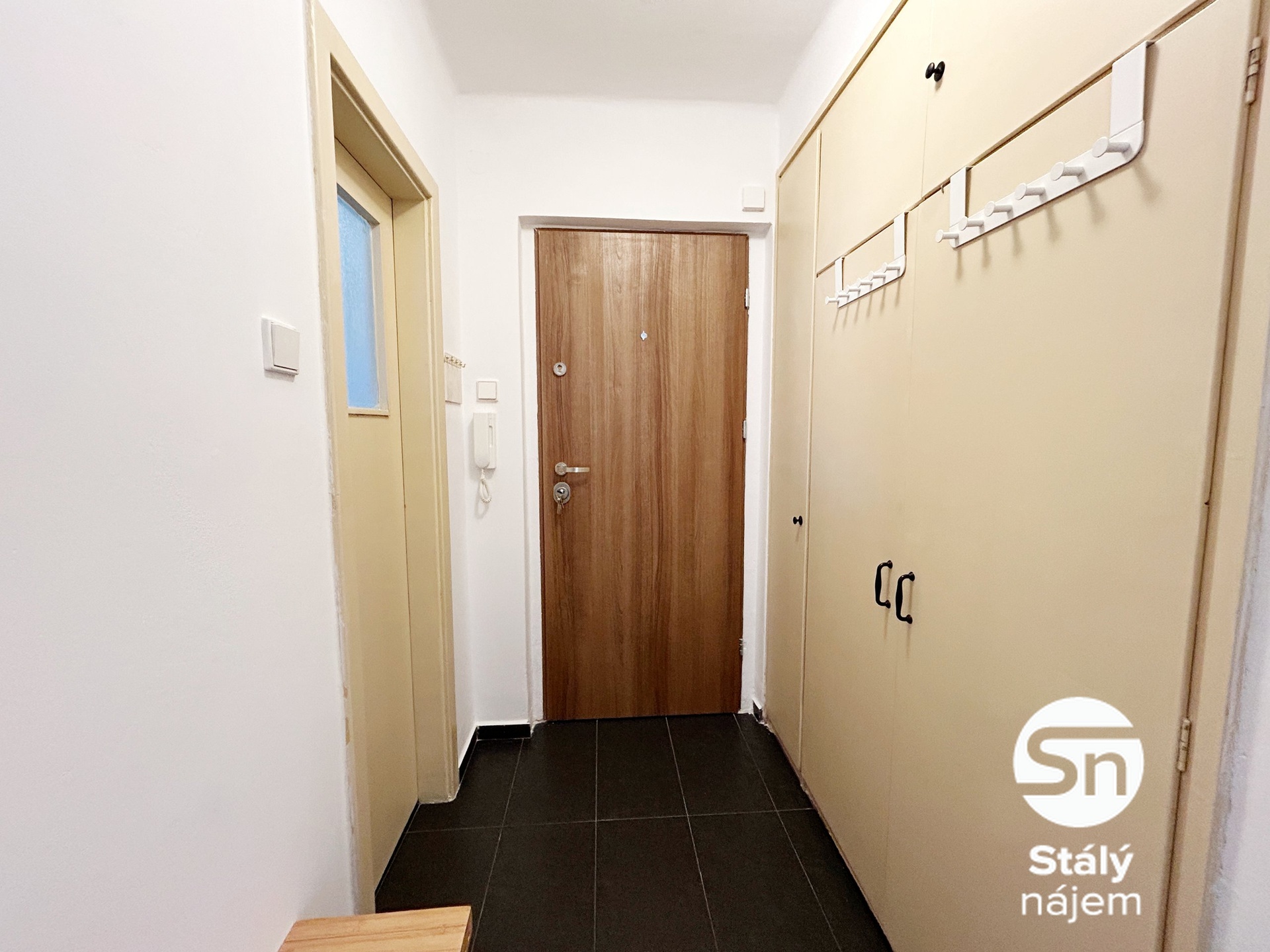 Dispozici tvoří prostorná kuchyň s lednicí, mrazákem, jídelním stolem a židlemi, obývací pokoj s gaučem a vstupem na menší balkon a ložnice s manželskou postelí a komodou. Na chodbě se nachází vestavěná skříň s úložným prostorem. Koupelna je vybavena vanou, pračkou a topným žebříkem. K bytu náleží 2 sklepní kóje.