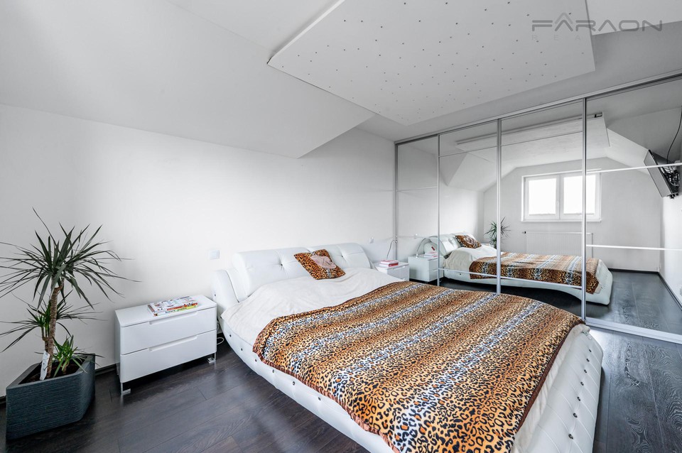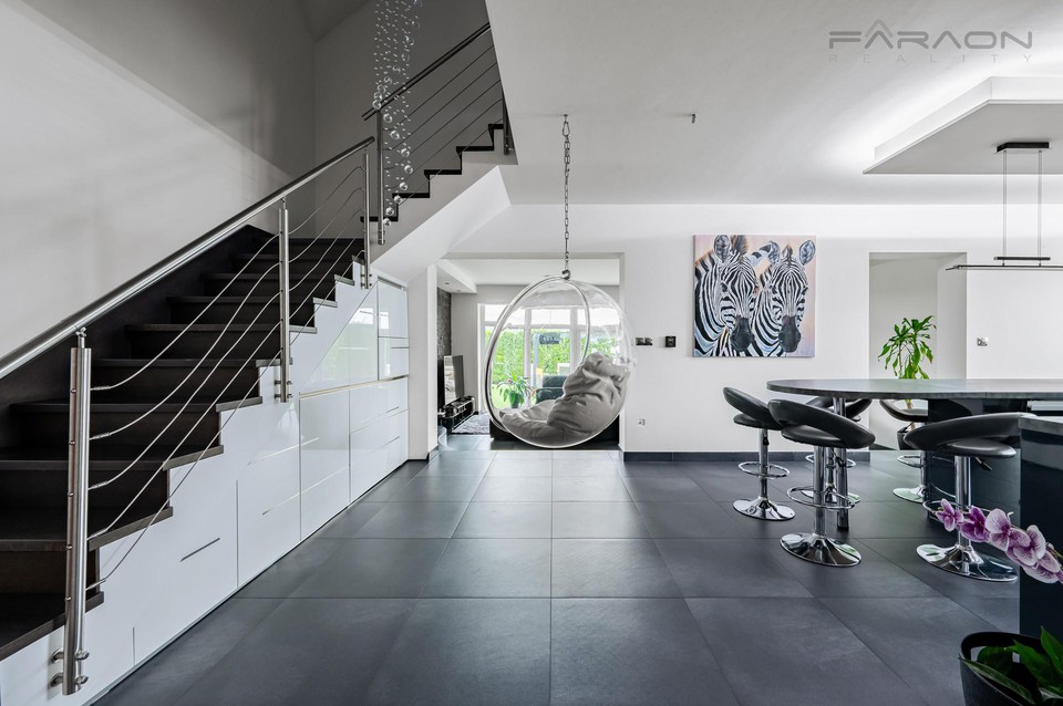 Prodej prostorné rodinné vily v malebném prostředí Brdských lesů v Mníšku pod Brdy nabízí kombinaci moderního designu, komfortu a klidného prostředí na pečlivě upraveném a oploceném pozemku o velikosti 1 180 m². Dvoupodlažní zděná a zateplená vila o užitné ploše 346 m² byla postavena v roce 2012 a poskytuje panoramatické výhledy do zalesněné krajiny. Přestože je zastávka autobusu vzdálena jen několik minut chůze, lokalita zajišťuje maximální soukromí a klid.