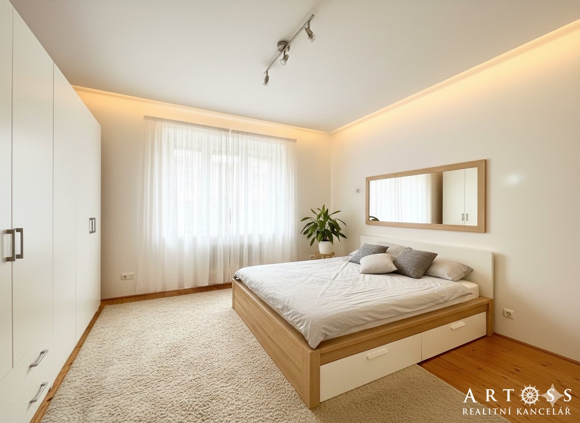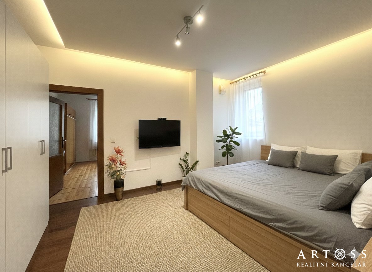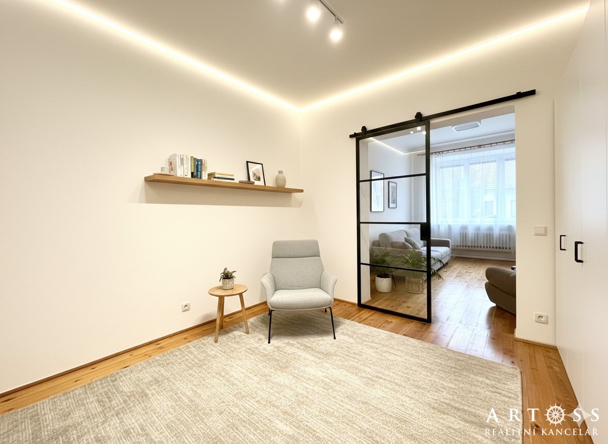 Potenciál pro modernizaci: Interiér je udržovaný a nabízí možnost estetických úprav dle vlastního vkusu (viz přiložené vizualizace).