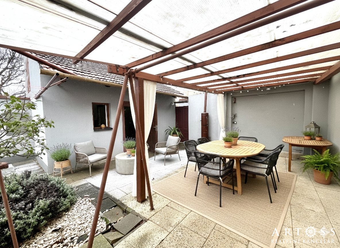 Soukromí: Uzavřený dvůr se zastřešenou terasou vytváří soukromou oázu klidu, která je zcela oddělena od okolního ruchu.