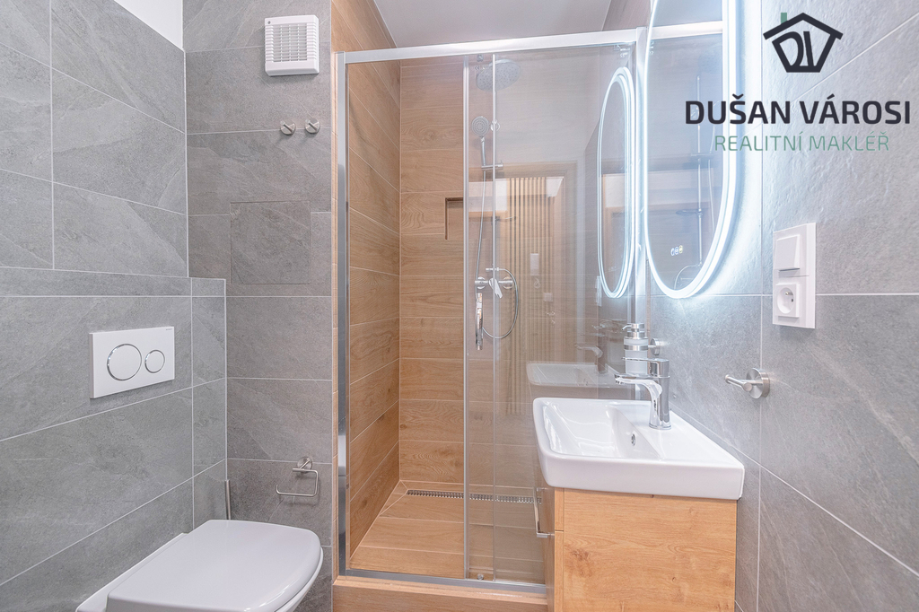 Byt má prostornou lodžii, plastová okna, v kuchyni, chodbě a koupelně dlažbu, v pokoji pak vinylovou podlahu. Elektroinstalace je nově v mědi. Koupelna disponuje prostorným sprchovým koutem, závěsným WC geberitem a zrcadlem s nastavitelnou barvou a intenzitou světla včetně funkce proti zamlžování.