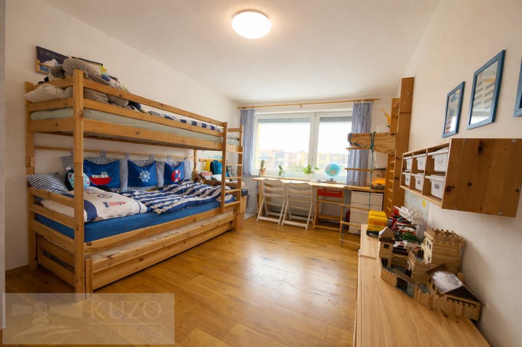 Byt o celkové ploše 100m2, 3+1 disponuje balkonem o velikosti 12 m². Velkým bonusem je samostatná jednotka 1+kk o velikosti cca 20 m² s vlastní koupelnou v suterénu, kterou lze případně propojit s dětským pokojem. K bytu dále náleží dva sklepy a možnost využívání společné zahrady.