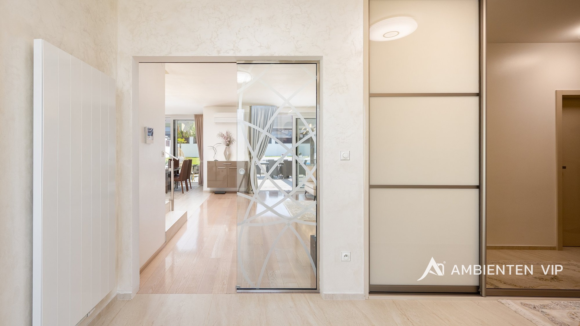 AMBIENTEN VIP si Vám dovoluje nabídnout nádherný rodinný dům o dispozici 5+kk s garáží pro dva vozy s možností parkování dalších dvou vozů za branou na dálkové ovládání na vlastním pozemku v lokalitě Moravany. CP pozemku činí 894 m2, ZP a nádvoří 189 m2, UP domu 320 m2. Nemovitost prošla velice nákladnou kompletní rekonstrukcí a nabízí vysoký standard bydlení i pro velice náročnou klientelu. V přední části domu při vstupu se nachází hliníková pergola s možností příjemného posezení. Nemovitost je cihlová, zateplená, je vybavena hliníkovými okny s předokenními žaluziemi. Nemovitost je vybavena alarmem, kamerami a klimatizací. Okna jsou vybavena venkovními žaluziemi. Další možnost posezení vám nabídne zahradní hliníková pergola směrem do zahrady a k bazénu s vlastní letní kuchyní, která je vybavená umyvadlem, lednicí, myčkou a venkovním posezením. Terasa je kompletně vydlážděná. Třetí možnost posezení máte na terase nad garáží, která je zastíněna venkovní markýzou. Dominantou vilky je honosná vstupní hala s úložnými prostory, přes kterou vcházíte do otevřené dispozice kuchyně, jídelny a obývacího pokoje. Kuchyňská linka na míru je vybavena spotřebiči značky Siemens. Stěny vstupní haly, obývacího pokoje, jídelní haly a ložnic jsou provedeny speciální dekorační technikou benátský štuk. Jste-li milovníky grilování, posezení s přáteli pod pergolou a soukromí na vlastním pozemku, tak tato vilka je určena právě vám. Nadchne vás použitými materiály v přírodních odstínech. V domě můžete nejen komfortně bydlet, ale i odpočívat ve vlastním wellness s finskou saunou, vířivkou s nadstandardním sprchovým koutem s hlavovou sprchou. Nachází se zde i vlastní toaleta a dále společenská místnost s posezením a televizí v rámci které je zaintegrována vířivka. Wellness zóna je vybavena klimatizací a odvětráním proti vlhkosti. V přízemí domu se dále nachází koupelna s umyvadlem, sprchou a toaletou. Do horního patra vilky vstupujete po honosném schodišti, kterému vévodí skleněné zábradlí s nerezovým madlem. Koupelna v horním patře je vybavena vanou, sprchou, toaletou a umyvadlem. Dále se zde nachází čtyři ložnice, jedna z nich má výstup na terasu a jedna na balkon směrem do ulice. Hledáte-li luxusní vilku s možností rychlého nastěhování tak takto nemovitost je určena právě Vám. Obec Moravany nabízí veškerou občanskou vybavenost. Nemovitost se nachází v bezprostřední blízkosti Brna s dojezdovou vzdáleností 15 minut do centra, 5 minut od nákupního centra FUTURUM a má skvělou dostupnost na dálnici D1 a D2. Veřejnou dopravou jste v centru Brna do 20 minut. Neváhejte si co nejdříve sjednat prohlídku této nádherné nemovitosti.