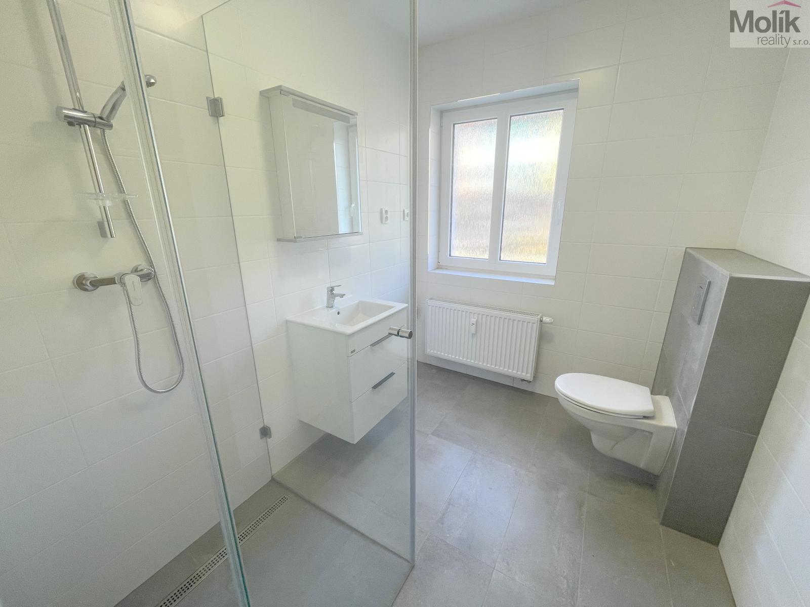 Byt je také po kompletní rekonstrukci - koupelna se sprchovým koutem, keramickými obklady a dlažbou, WC se zabudovaným modulem, umyvadlo zabudované ve skříňce, nové omítky, podlahové krytiny, vnitřní dveře, kuchyňská linka se zabudovanými elektrospotřebiči atd... Byt je vytápěn pomocí systému ústředního vytápění s teplovodními radiátory. Na přání majitele, pouze zájemci bez domácích mazlíčků.