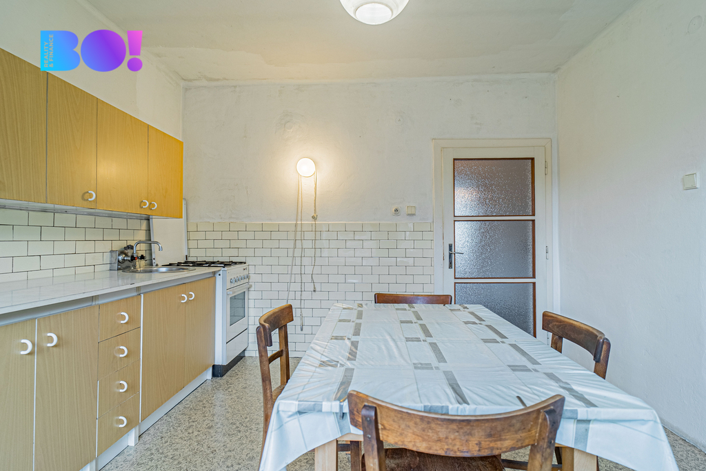 Jedná se o zděný, podsklepený rodinný dům z 70. let s užitnou plochou 218 m². Dispozice obou obytných pater je totožná, což umožňuje vícegenerační bydlení nebo oddělení soukromé a pracovní části. Vstupní zádveří vede do centrální chodby, odkud je přístup do sklepa, samostatné toalety a obytné části. Každé patro zahrnuje prostorný obývací pokoj, kuchyni, dvě ložnice, koupelnu a balkon s výhledem do zeleně.