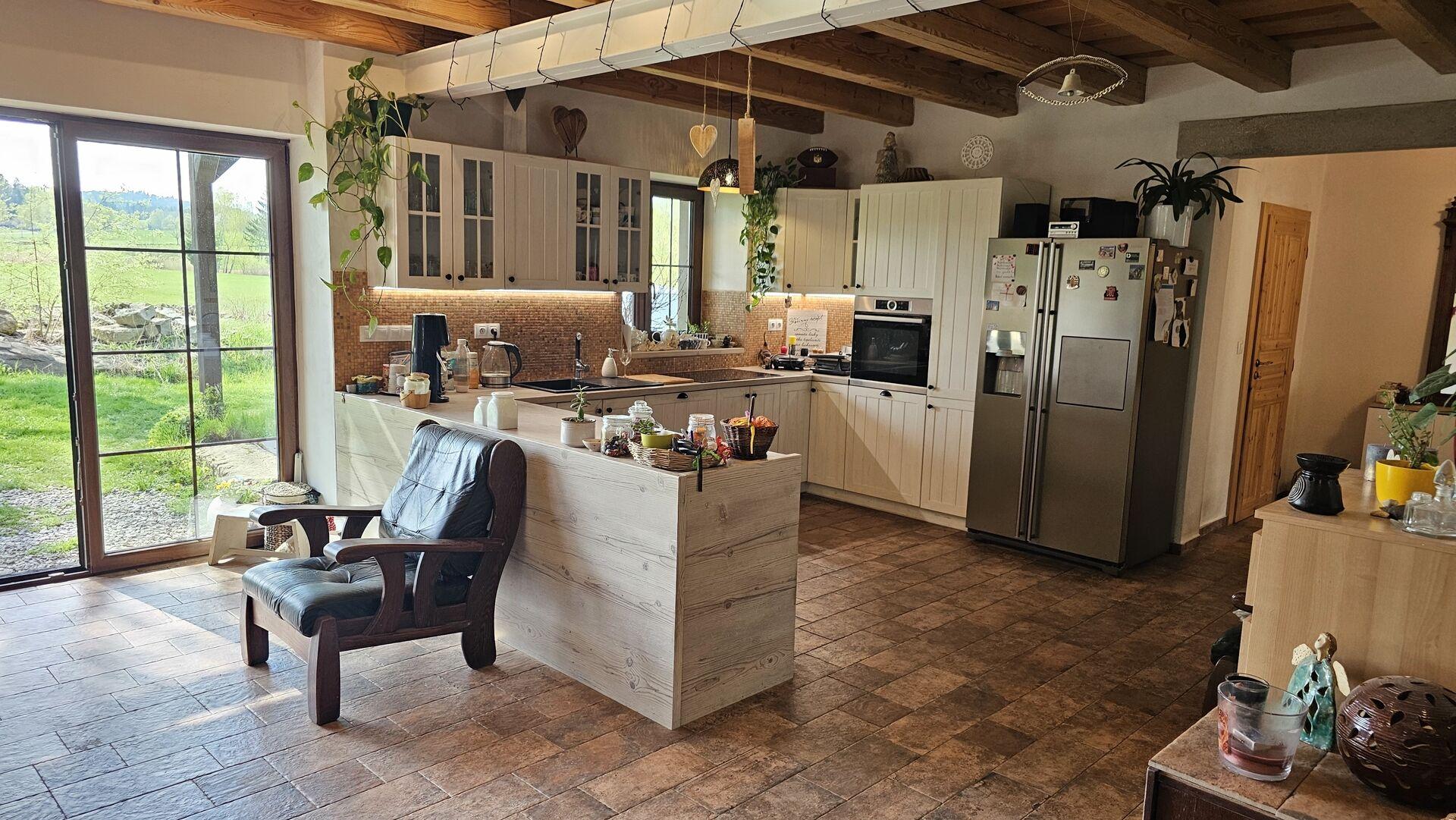 - konání svateb s výhledem na kostelík, školení atd. - velký společenský sál 66m2 v přízemí, venkovní posezení na stávající pergole v zahradě + využití zahrady a stodoly + ubytování hostů, parkování i 10 aut.