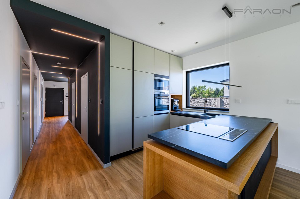 Dům se prodává kompletně vybavený – včetně nábytku na míru, sauny, pračky, sušičky, designové kuchyňské linky se všemi zabudovanými spotřebiči a pracovní deskou z přírodního kamene. V celém domě je instalované úsporné LED osvětlení a závěsná svítidla.